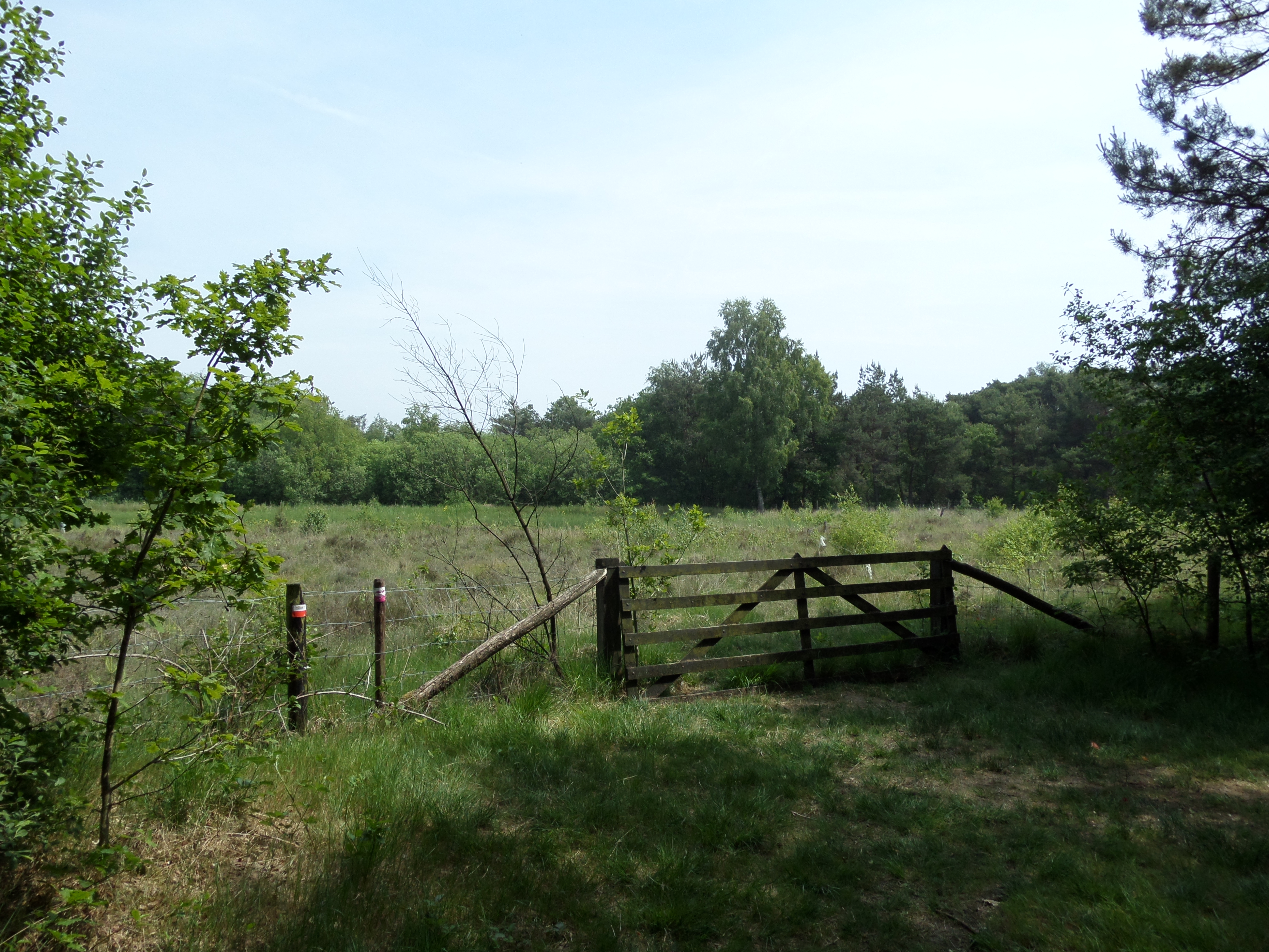 Gasterij de Roode Schuur aan de rand van Nijkerk ‘komt’ net iets te vroeg. Nog maar een half uur geleden stapte ik immers uit de trein. En bovendien, met de weidse blik op de landerijen voor mij verdampt het verlangen naar verse ochtendkoffie. Net als een jaar geleden laat ik mij wederom aangenaam verrassen door de schoonheid, rust en vooral afwisseling van het Gelderse platteland tussen Nijkerk en Putten. Vorig jaar was het start- en eindpunt station Putten. Dit keer het 150 jaar oude station van Nijkerk, een plaats met -toch- ruim veertigduizend inwoners. Op de tot nu toe warmste en eerste tropische dag van het jaar verruil ik bij Landgoed Balkenschoten het fietspad voor een schaduwrijk bospad. Bijna vier uur lang wandel ik over bospaden, landwegen, akkerranden, landgoederen en heidepaden. Verheugend op iedere volgende bocht. Op de Schoenlappersweg, richting buurtschap Hell en niet ver van Huinen, geniet ik op een boomstronk van een broodje kaas en de stilte en ongereptheid van de Kruishaarse Heide. Wat wil een mens nog meer?? Zie voor een routebeschrijving de routebeschrijving van Groene Wissels.