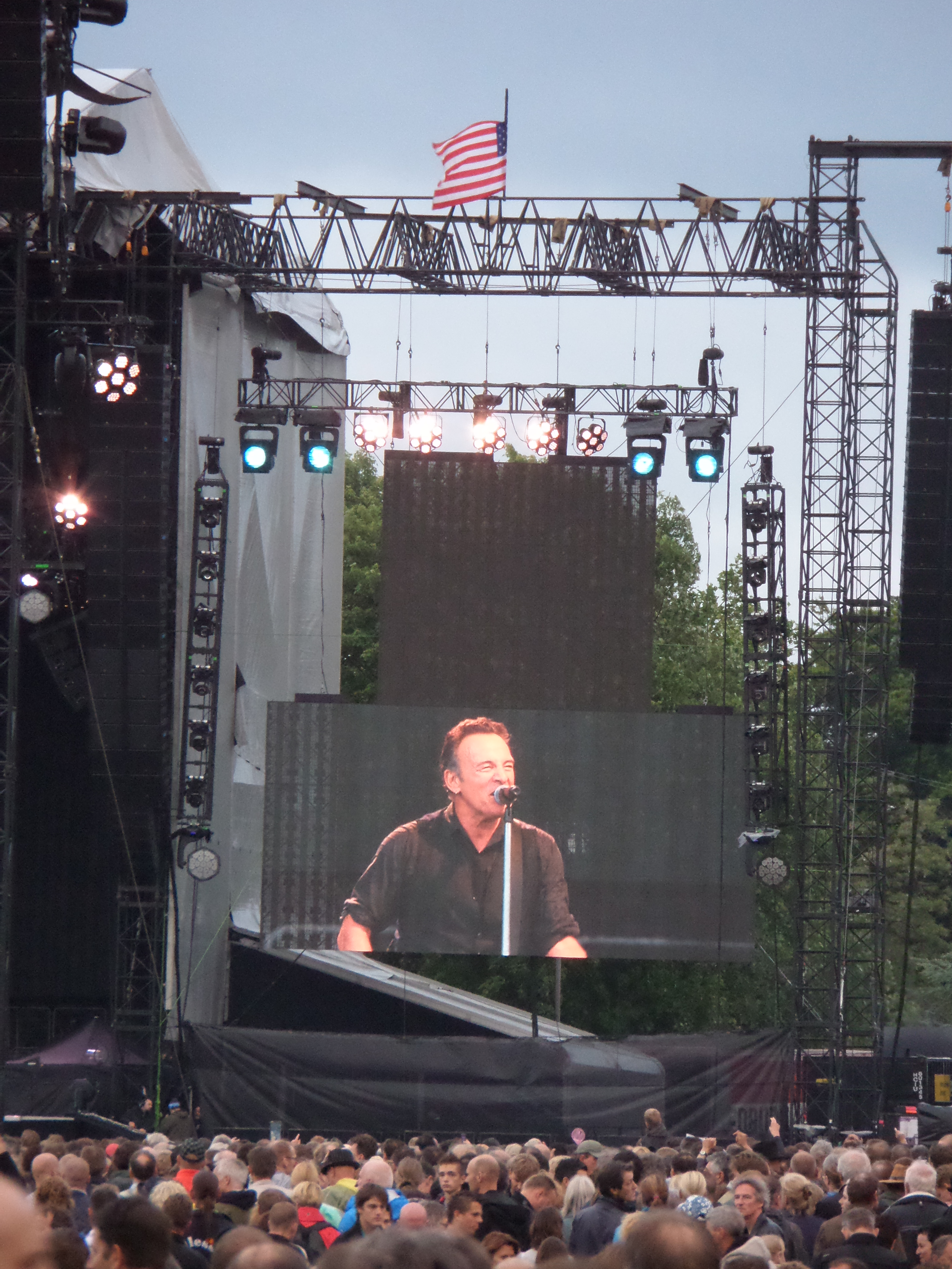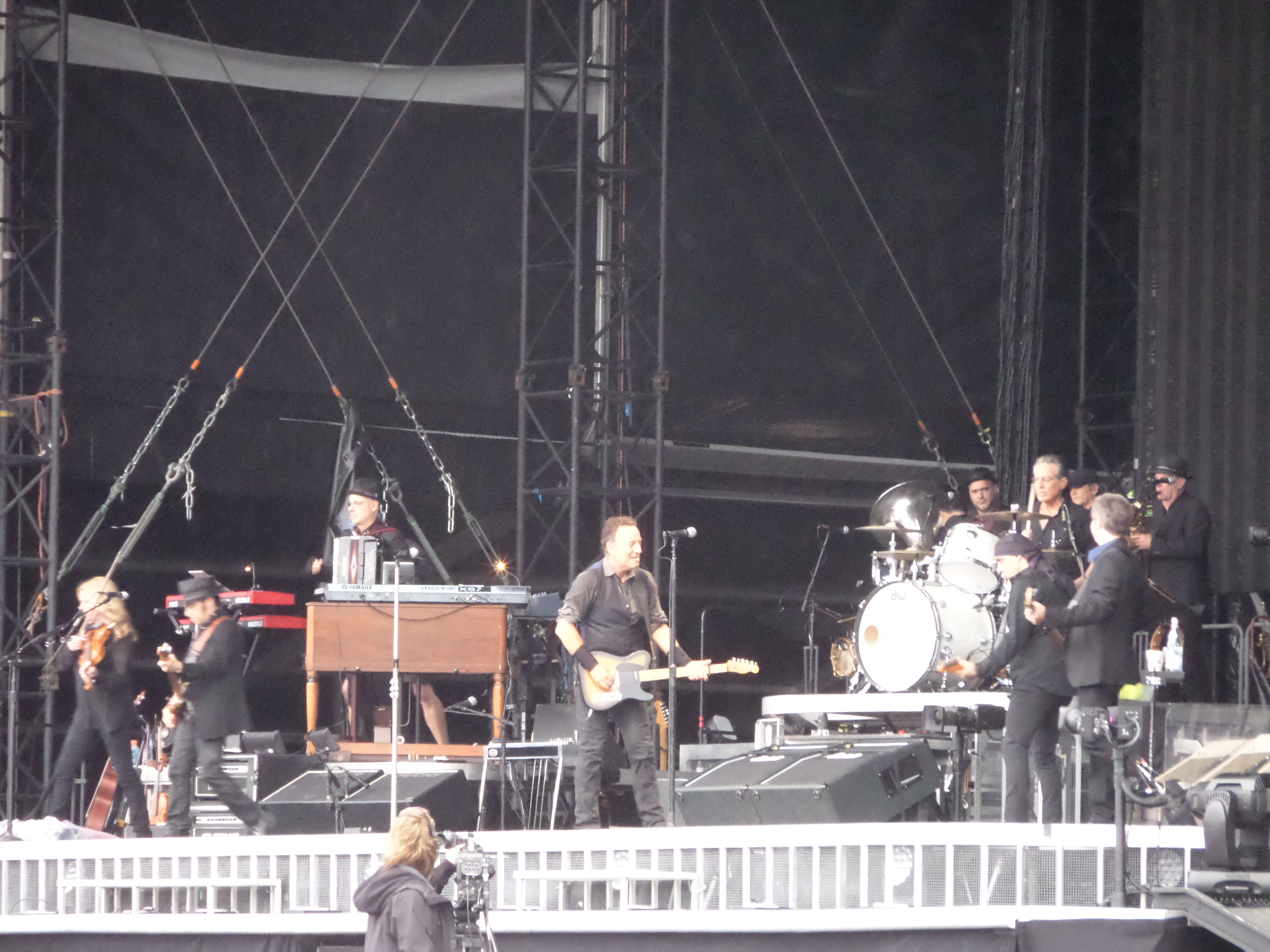 Hoe dan ook, een avond Bruce Springsteen en niet te vergeten the E Street Band staat voor garantie. Voorpret vooraf, tijdloos plezier tijdens en hoop achteraf. Want na gisteravond is de wereld nog niet opgegeven. Als is het maar voor een paar uur. De rode draad in de setlist van de drie uur durende show zijn de albums Wrecking Ball van vorig jaar en een middenstuk met bijna alle nummers van Darkness on the Edge of Town uit 1978. Een toepasselijke titel overigens voor de (weer)omstandigheden. Donkere uitgerekte wolken die voortdurend over het podium en over de zestigduizend toeschouwers waaien.