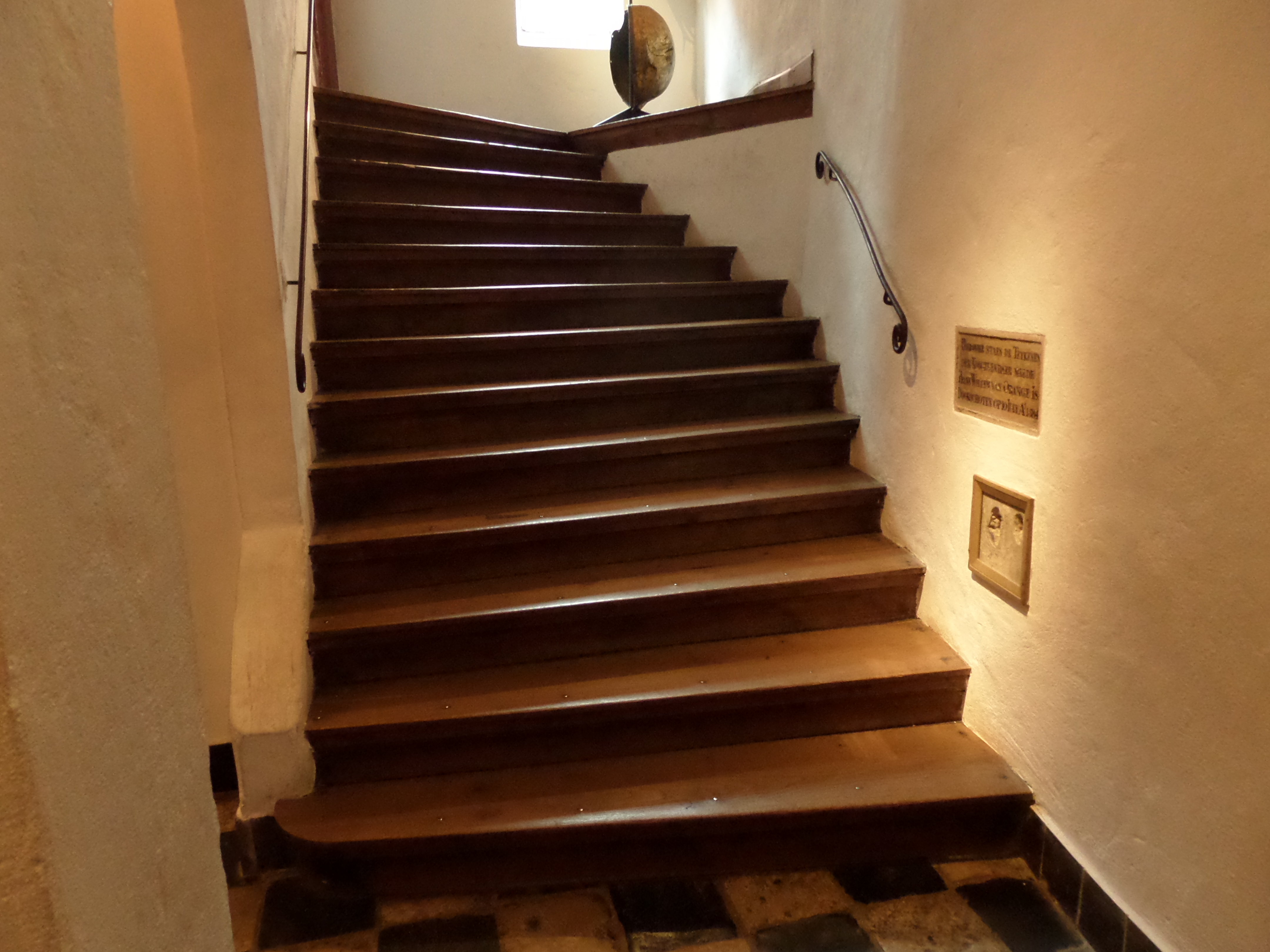 Prinsenhof Delft. Plaats delict moord Willem van Oranje. Twee van de drie kogelgaten zijn nog te zien in de muur. Volgens het onderzoek uit 2010, zijn het waarschijnlijk de echte gaten. (foto: René Hoeflaak)