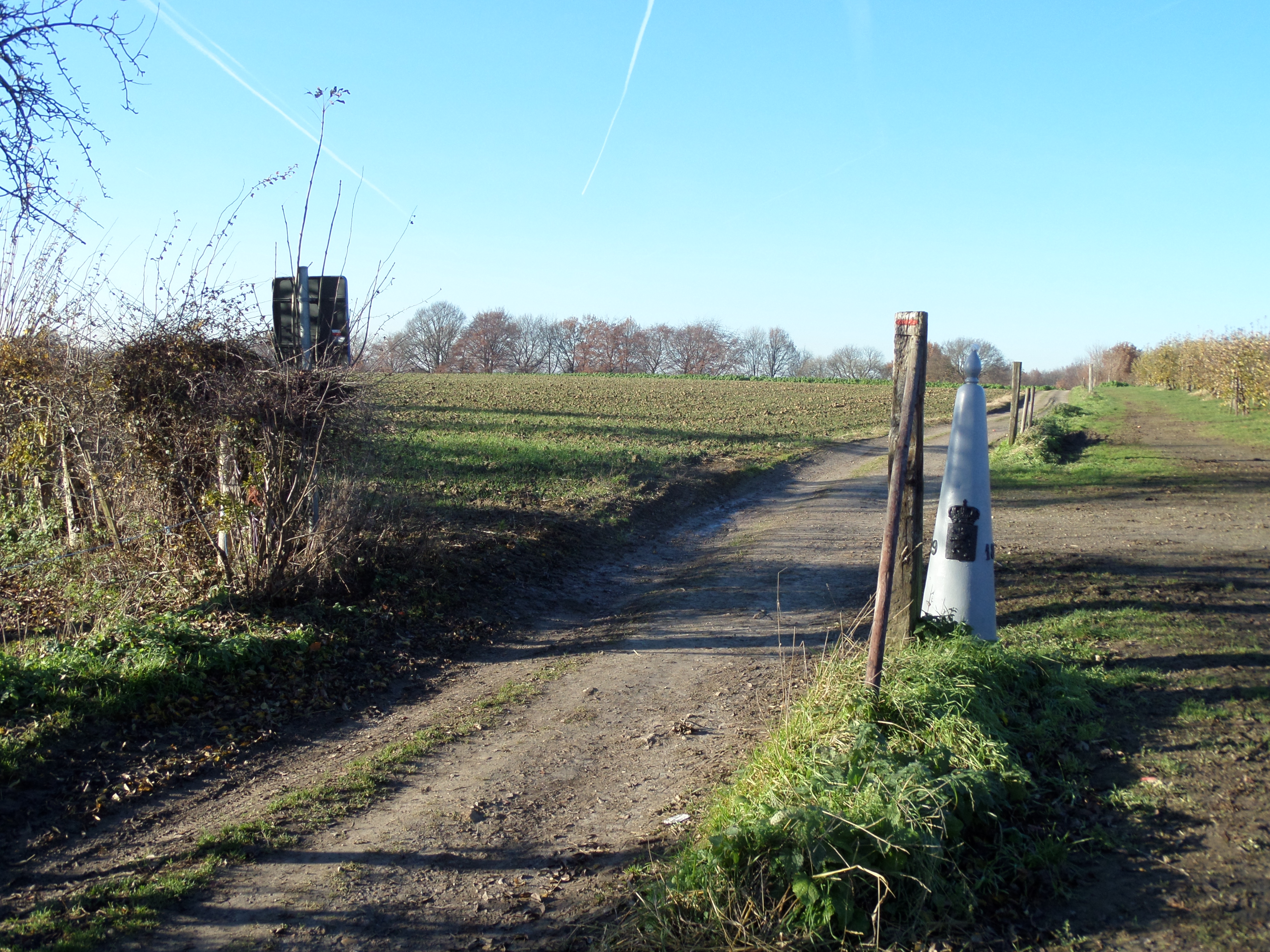 Na een eenvoudig klimmetje passeer ik op een boomgaard pad grenspaal 29 . Een model grenspaal. Een grenspaal zoals een grenspaal moet zijn. Terug in Nederland daal ik verder af door het Mescher Plukbos richting Mariadorp. Station Eijsden is dan nog maar een eitje. Wachtend op de trein naar Maastricht lees ik het overlijdensbericht van Kees Brusse, de man achter de stem van de Engelbewaarder van Kapelaan Odekerke. Hoe moet zo zijn vandaag.