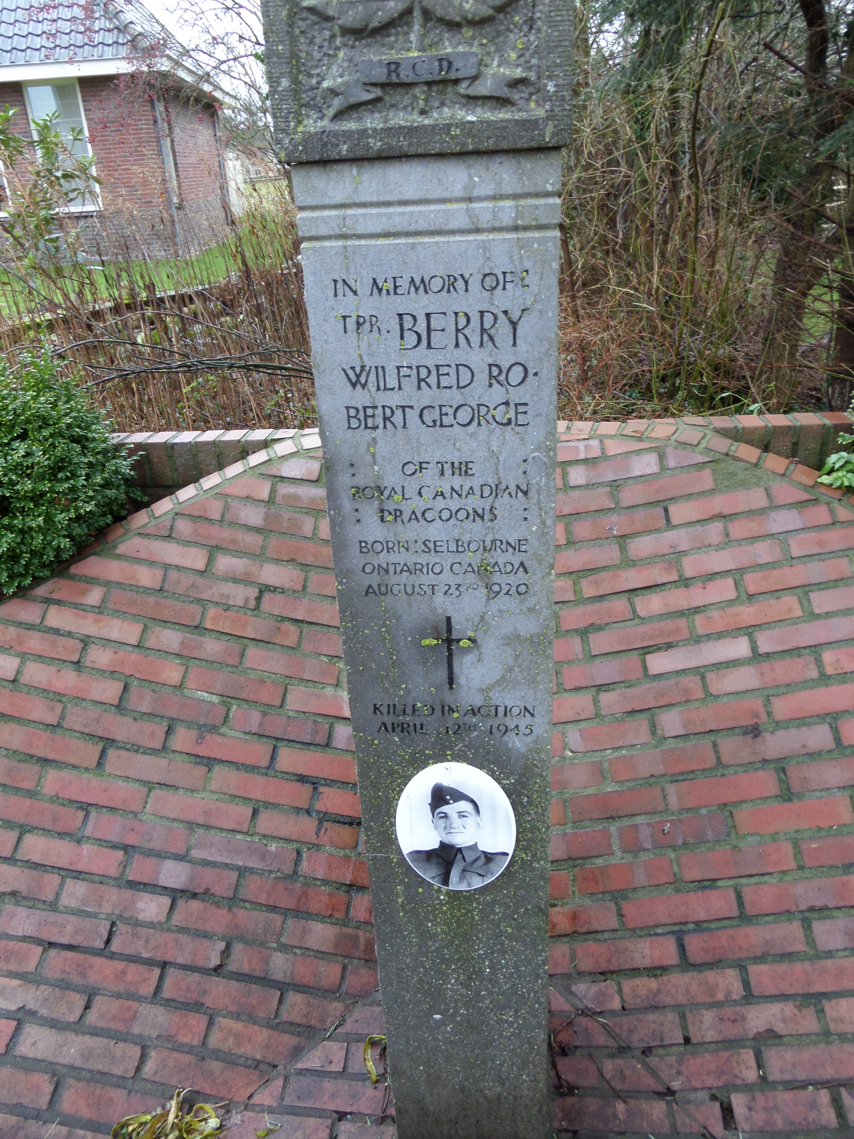 Aan de wandel in de bossen en over de weilanden rondom Wolvega passeerde ik onlangs het monument van Wilfred Robert George Berry in het dorpje Oldeholtpade. Een dorpje met duizend inwoners, een voetbalclub en een niet onverdienstelijke korfbalclub. En een dorp met verdriet, ontzag en eerbied voor haar oorlogsheld. Want het enige oorlogsbloed van Oldeholtpade is Canadees bloed, aldus Edmonds verderop in zijn artikel. Het bloed van Wilfred Berry, een onbekende soldaat uit St. Catherines, Ontario, Canada.