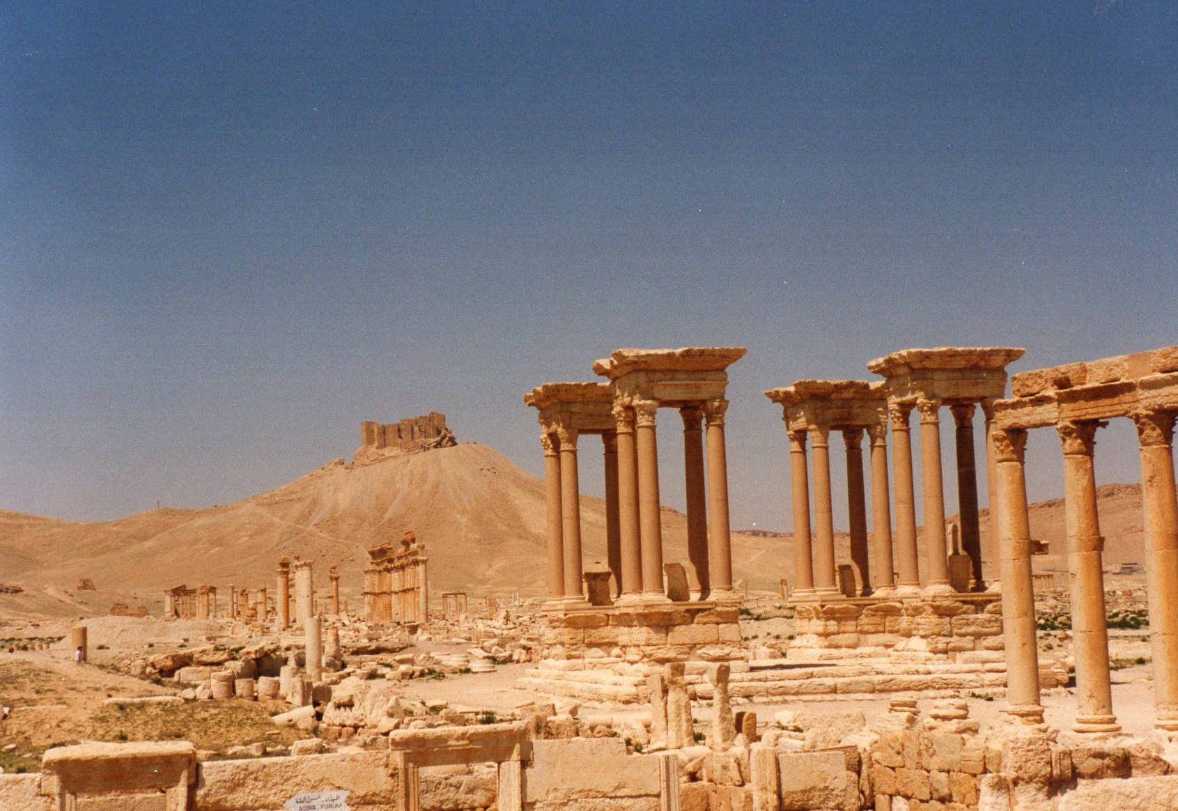 Terug naar april 1994. In het Venezia hotel en aan de gevels van de vele nabijgelegen flatgebouwen hangen grote portretten van toenmalige president Hafiz al-Assad (1930-2000) en zijn kort daarvoor verongelukte zoon en beoogde opvolger Bassel, de oudere broer van de huidige president Bashar. Toen nog oogarts in Londen. De vloerbedekking van de hotelkamer is opvallend vochtig. Tegen het drassige aan. Ik ruikt spic en span. Maar ach wat zou het, het leven in Syrië is immers -om met de woorden van Douma te spreken- niet eenvoudig. Na een verblijf van enkele dagen in Damascus reizen we met de groep van de inmiddels failliete reisorganisatie BAOBAB per bus naar onze volgende verblijfplaats, de uitstekend in tact gebleven Romeinse ruines van Palmyra, toen de belangrijkste trekpleister van het land.