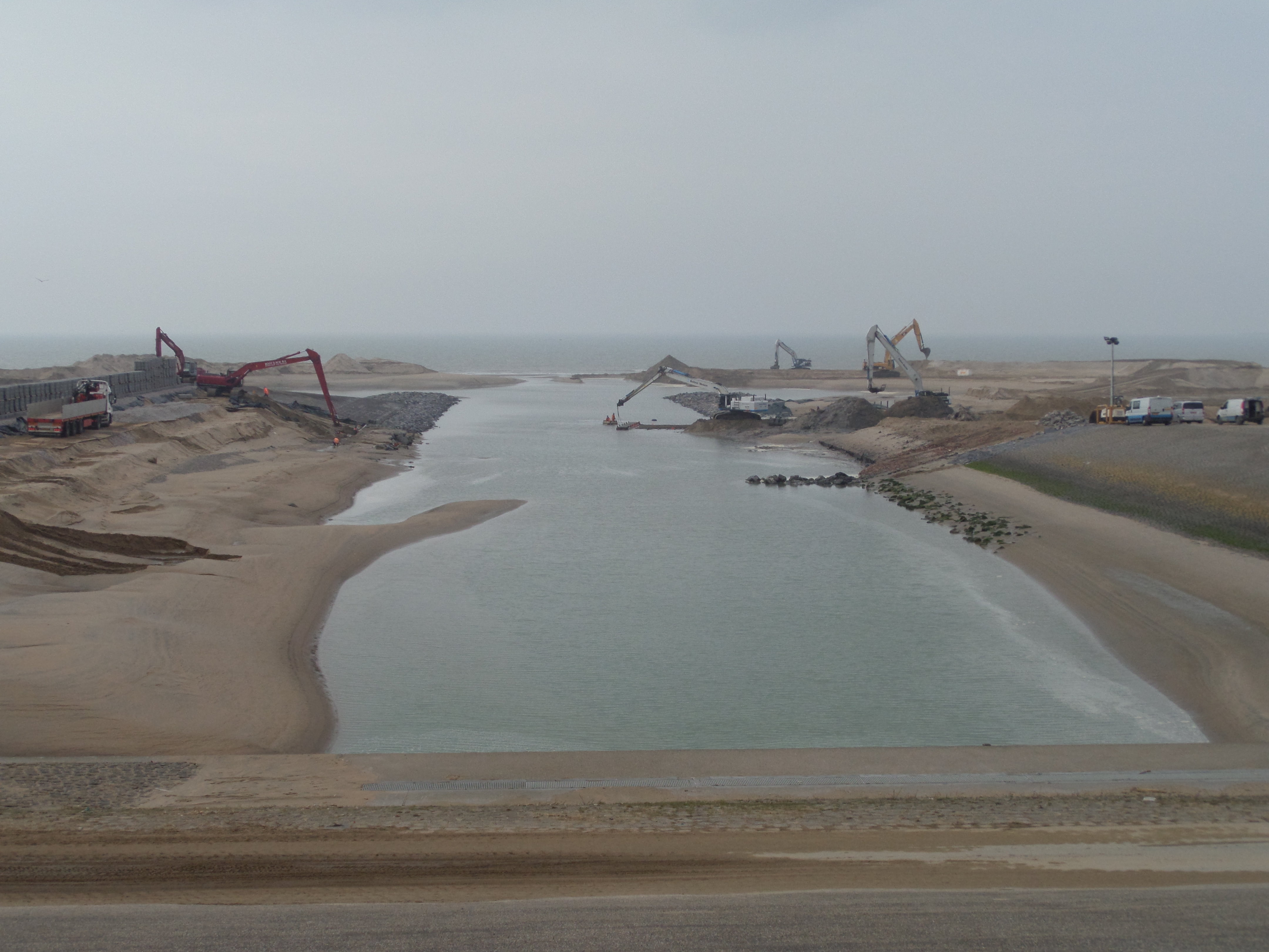 Katwijk, 4 maart 2014: Ballast Nedam werkt aan versterking van de Nederlandse kust zoals hier bij de uitmonding van de Oude Rijn in de Noordzee (foto: René Hoeflaak)