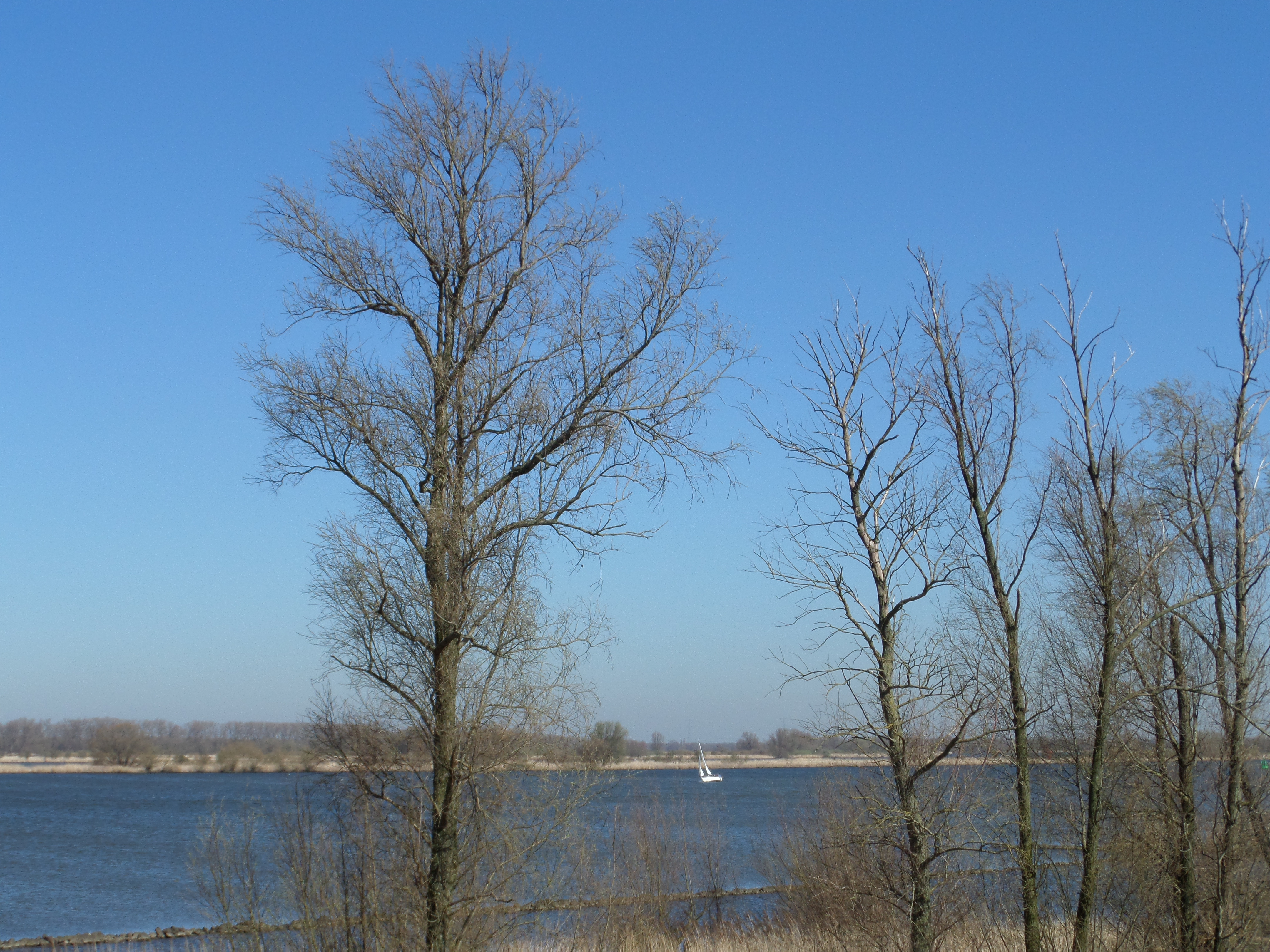 De rivier de Amer scheidt het natuurgebied de Biesbosch -aan de overkant- van het vaste land van Noord-Brabant. De rivier is 12,5 kilometer lang. (foto: René Hoeflaak)