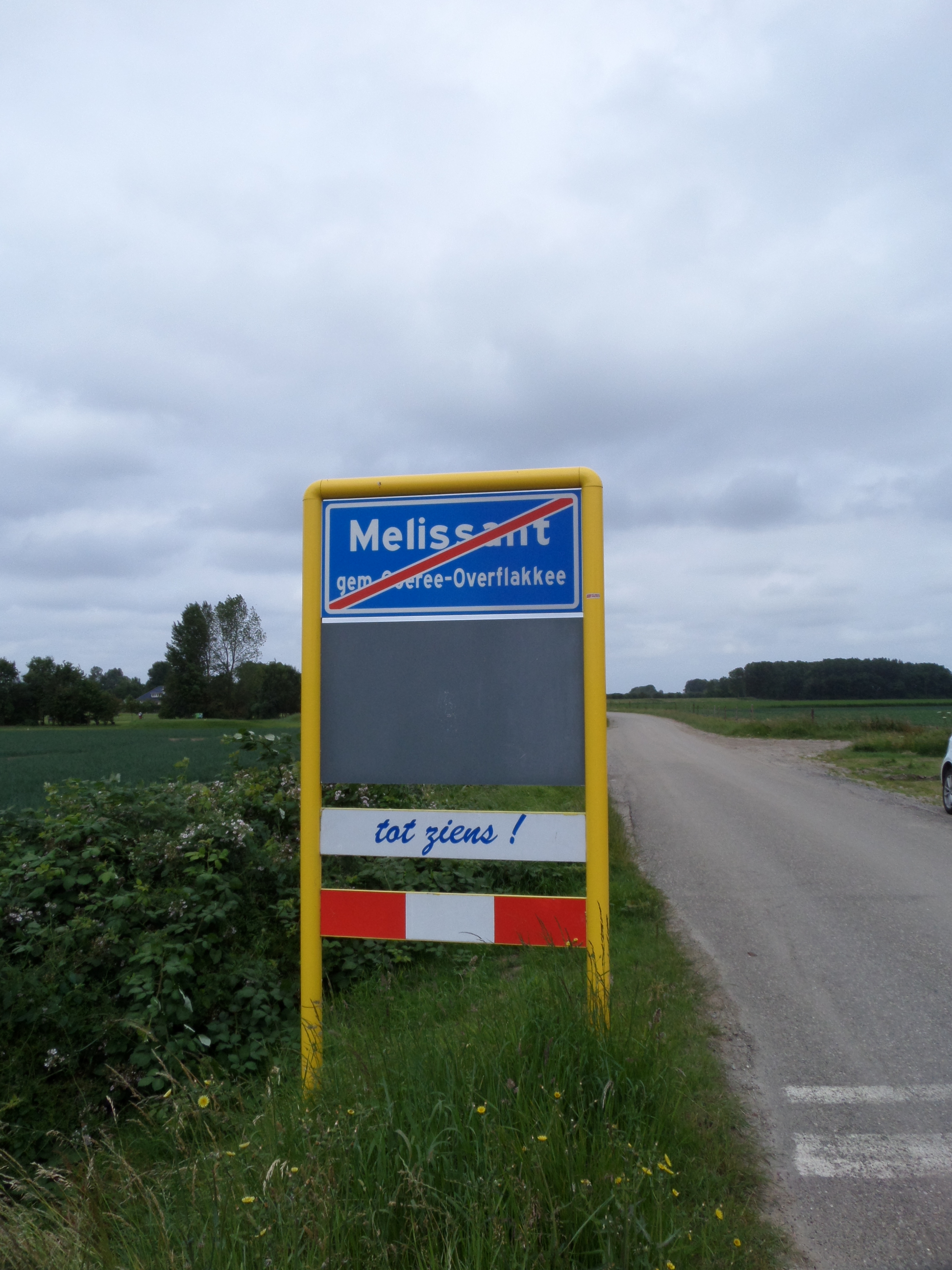 Na de slikken wandel ik nog kilometers lang door de gedroogde grasduinen over de smalle en voormalige zeedijk langs het Gorsingenpad. De spitse kerktoren van Dirksland breekt de horizon. Melissant is nog ver weg. Net als Dirksland. Laat staan Rotterdam. Ik ben nog lang niet thuis. Maar dat geeft helemaal niets. NB: In 1966 is Melissant alsnog opgegaan in de gemeente Dirksland. Dirksland maakt sinds vorig jaar deel uit van de gemeente Goeree-Overflakkee vernoemd naar het gelijknamige Zuid-Hollandse -tot begin negentiende eeuw nog Zeeuwse- eiland.