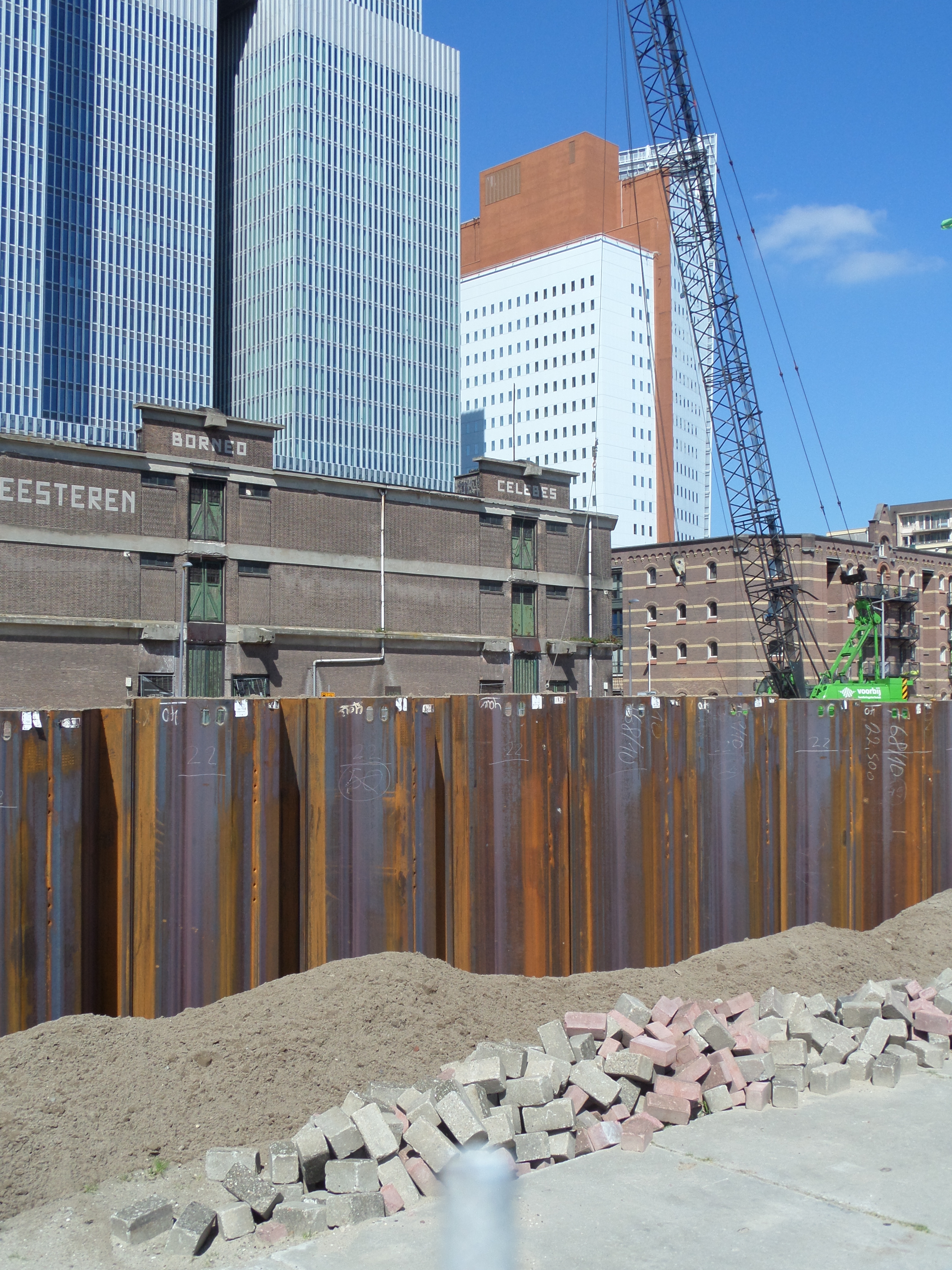 27 augustus 2014. Rotterdam, Wilhelminapier, Otto Reuchlinweg,: Damwand bouwplaats woontorens Boston-New Orleans (foto: René Hoeflaak)