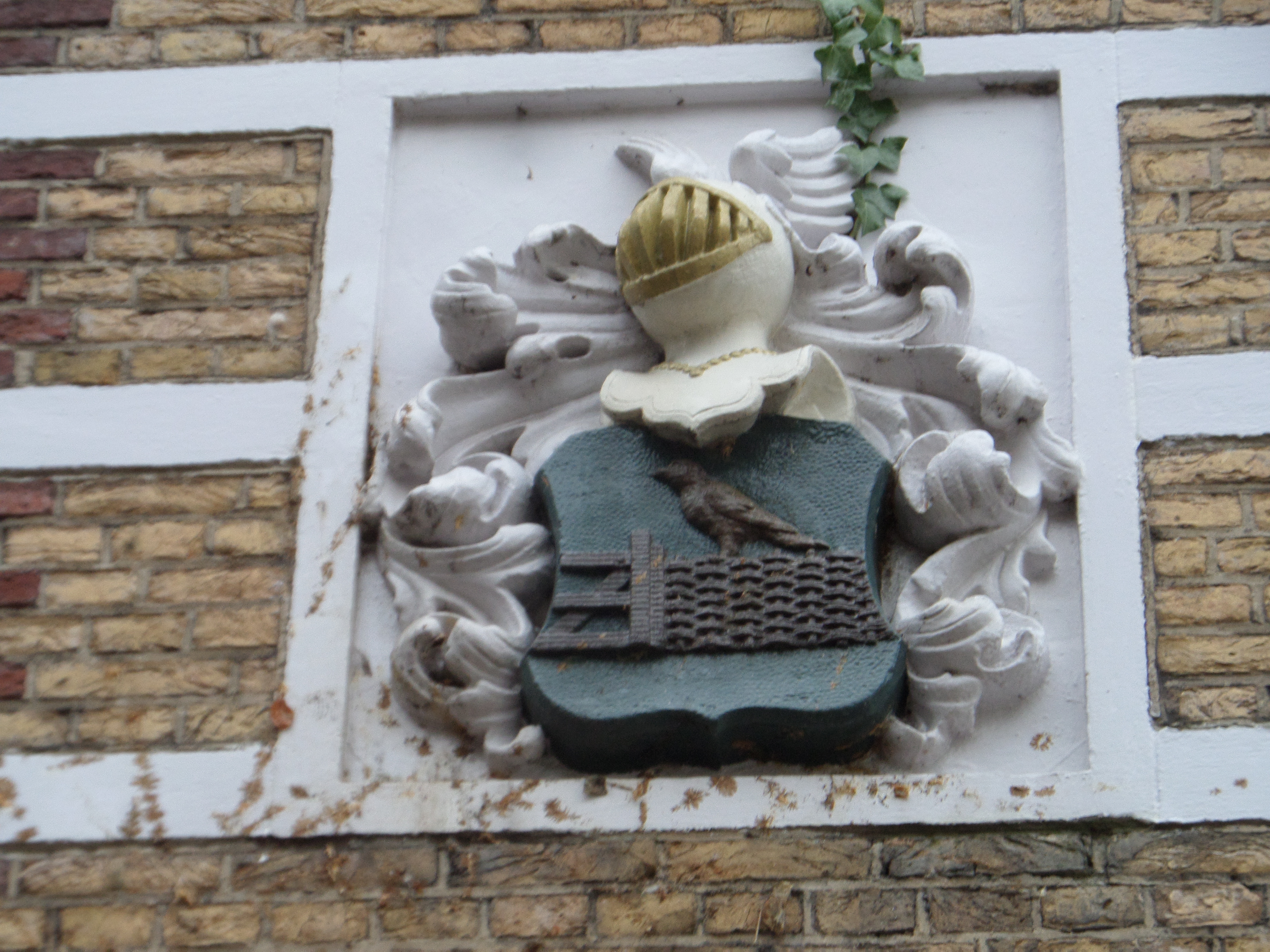 Siersteen met een piet (vogel) op een heining in gevel aan de Piet Heynstraat 6 (foto: René Hoeflaak)