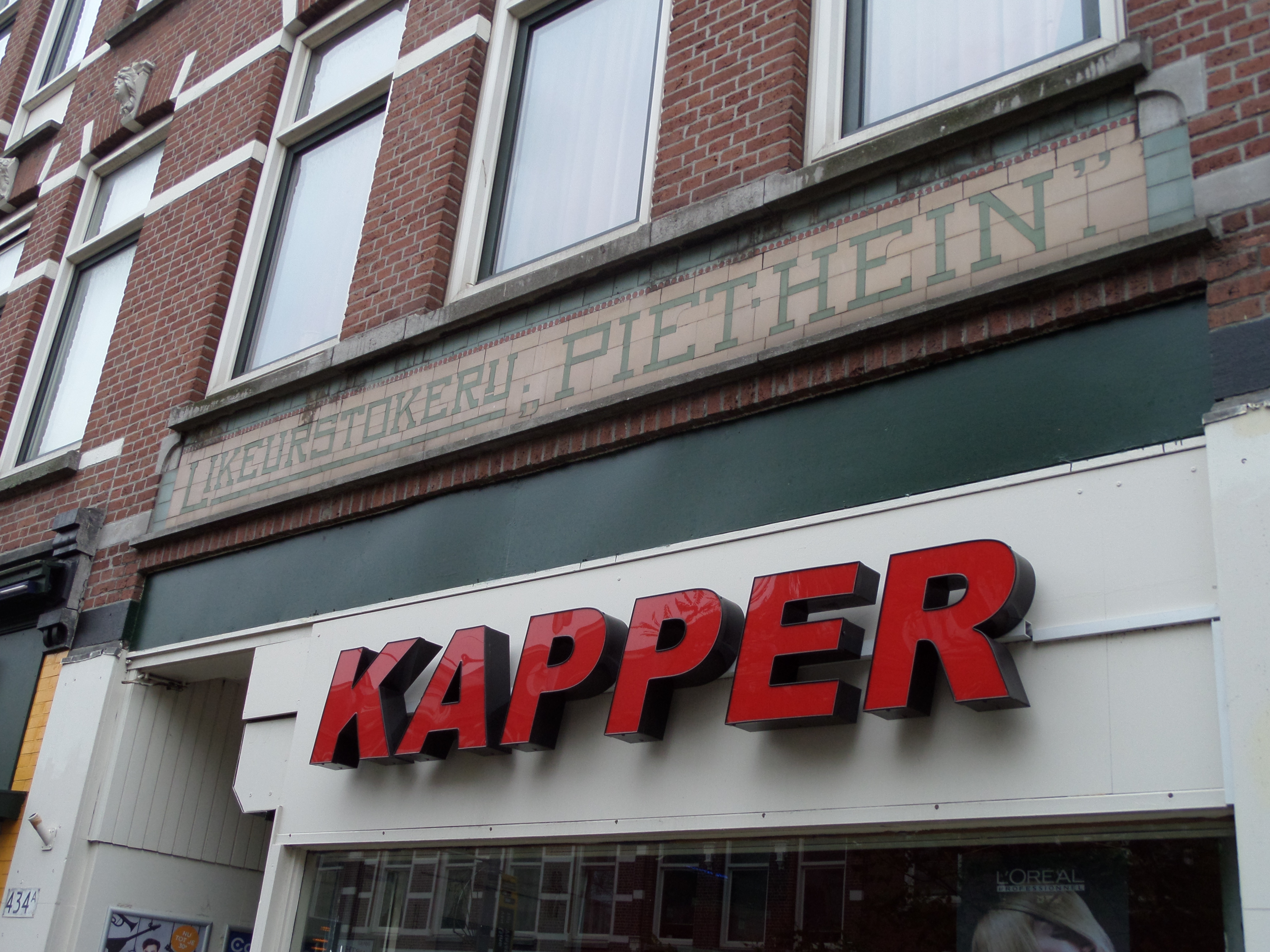 Als eerbetoon aan Heyn bouwt Bakker met behulp van een gemeentearchitect en op grond van beschrijvingen van buurtbewoners het huis van Heyn zo goed als het kan in oorspronkelijke staat na. En zo legt zijn zoon Bernardus Bakker op 8 maart 1871 de eerste steen van het woonhuis aan de Piet Heynstraat 6 in Delfshaven. Ik wandel verder. Tien minuten verder wandel ik over de nabijgelegen Nieuwe Binnenweg. En weer is het een gevel die mijn aandacht trekt. Boven een kapperszaak lees ik de tekst ‘Likeurstokerij Piet Hein’. Met een korte ‘ei’. Piet Heyn/Hein laat mij niet meer los. Lange of korte ei. Het maakt niet uit. Hein met een korte ei hield wel van borreltje. Het verhaal gaat dat hij een regelmatige gast was in het nog bestaande café de Druif in Amsterdam. Binnenkort maar eens langs gaan.