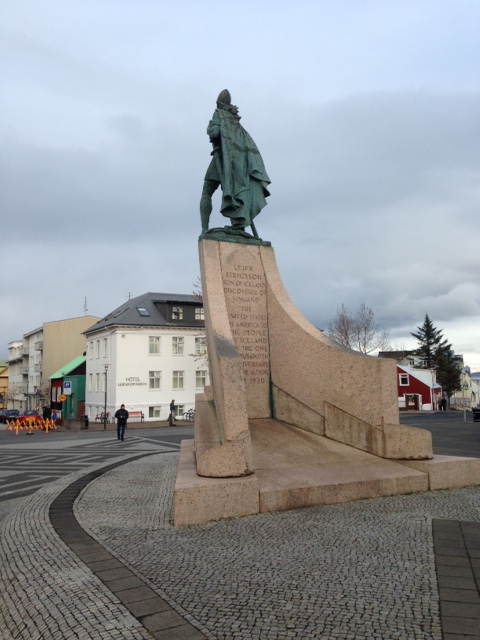 Zijn ‘vogelvrije’ vader Erik de Rode ontdekte Groenland. In 1002 voer Leifr met 35 bemanningsleden vanaf IJsland naar het westen om later aan wal te gaan op een stuk onbekend land dat ze Vinland noemde. Eiricsson was daarmee de eerste westerling die voet aan wal zette op Noord-Amerikaans grondgebied. Vijfhonderd jaar voor Columbus. Eriksson staat op een voetstuk in IJsland. En dus ook in Reykjavik.