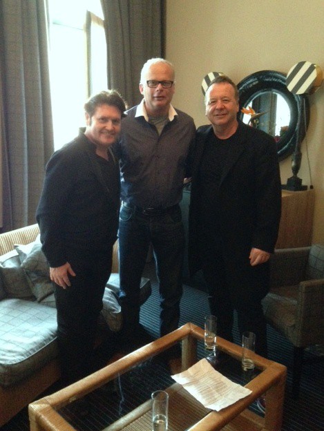 31 oktober 2014: Interview met Simple Minds: Charlie Burchill, ondergetekende en Jim Kerr (foto: René Hoeflaak)
