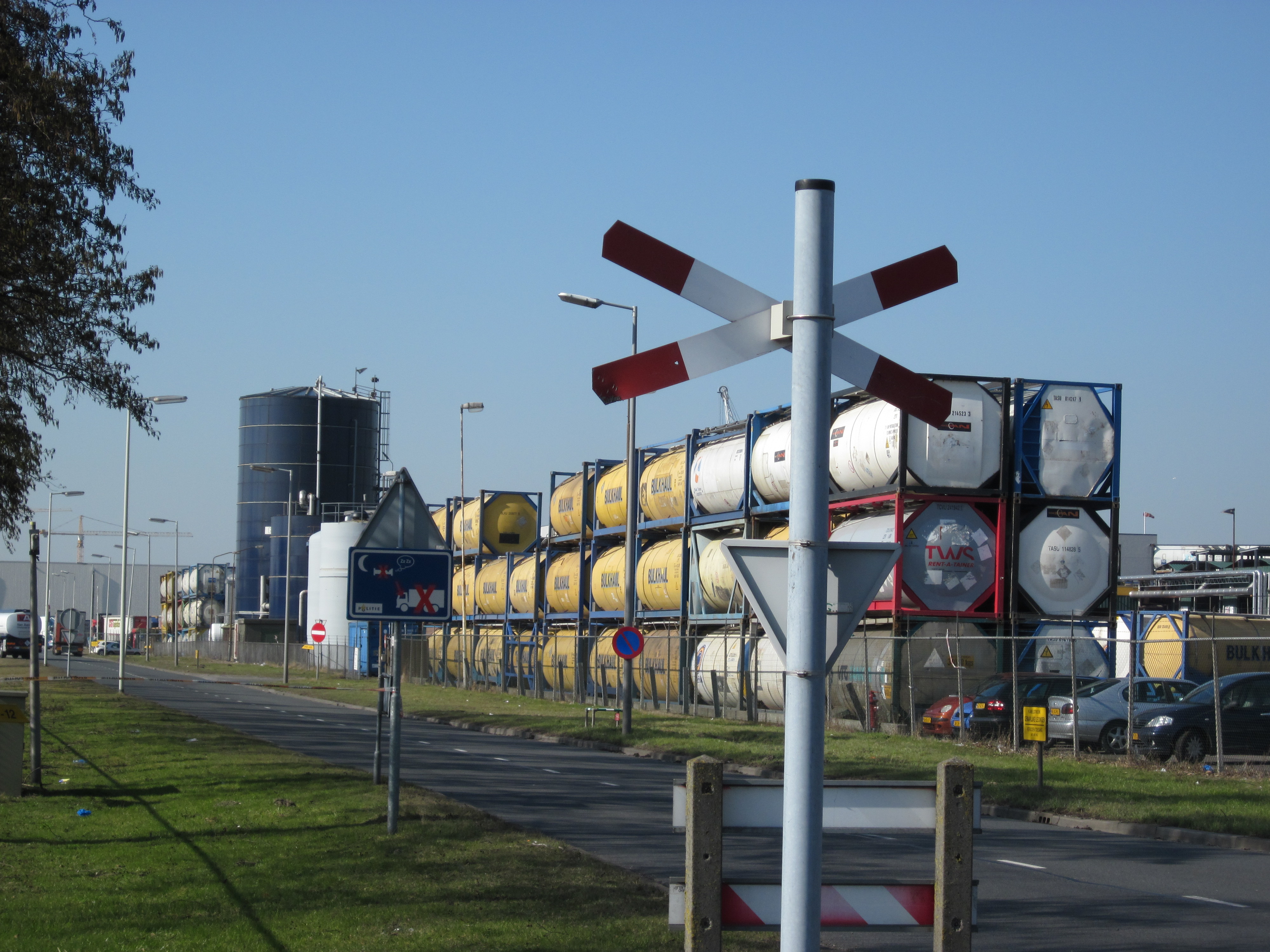 Twee potten pindakaas op het terrein van Unilever aan de Nassauhaven in Rotterdam (foto: René Hoeflaak)