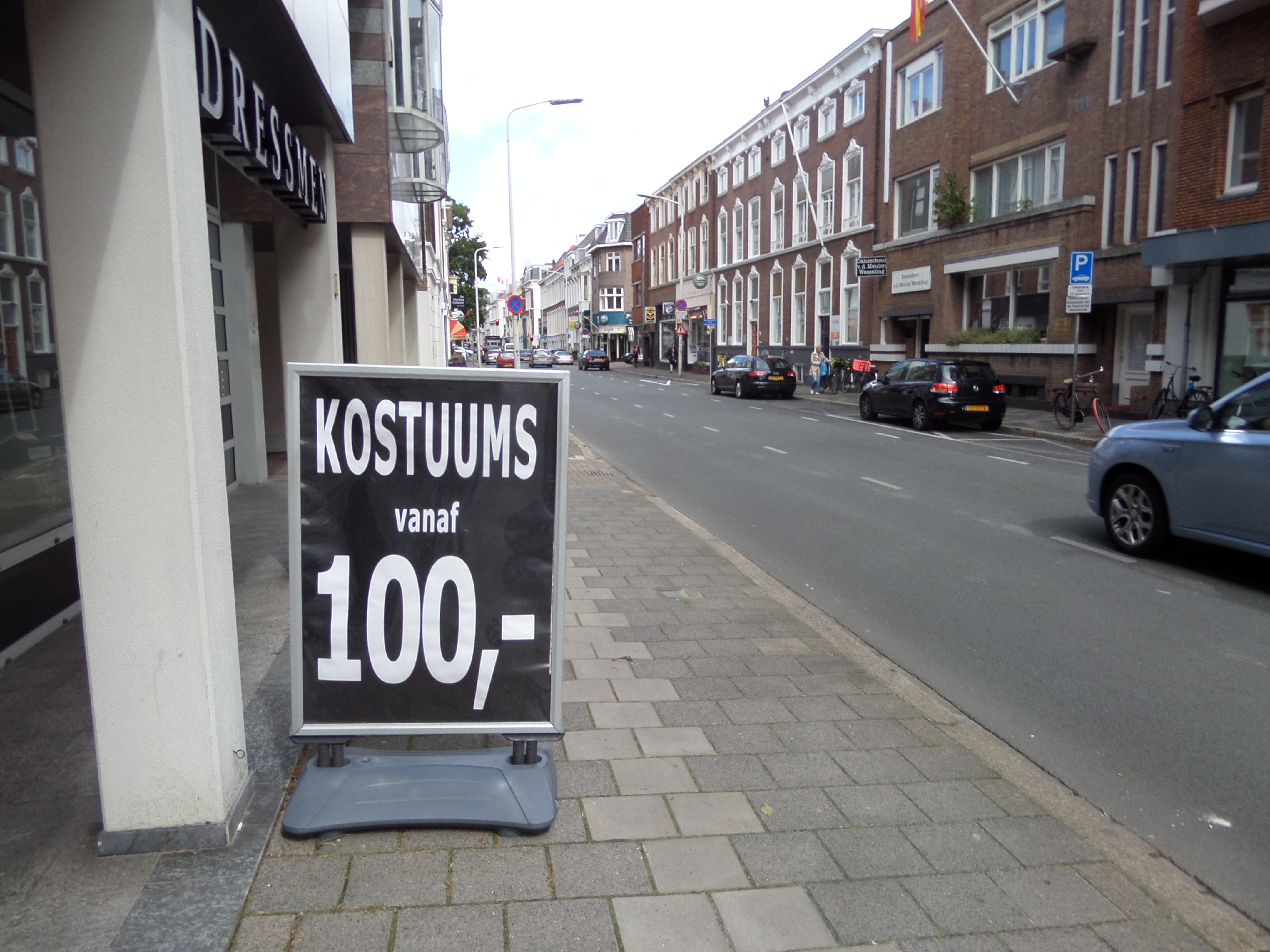 Den Haag, 30 juli 2015: Kostuums te koop op de Laan van Meerdervoort bij Dressman. Kwestie van een lettertje. Drees is zelden of nooit gezien in vrije tijds kleding (foto: René Hoeflaak)