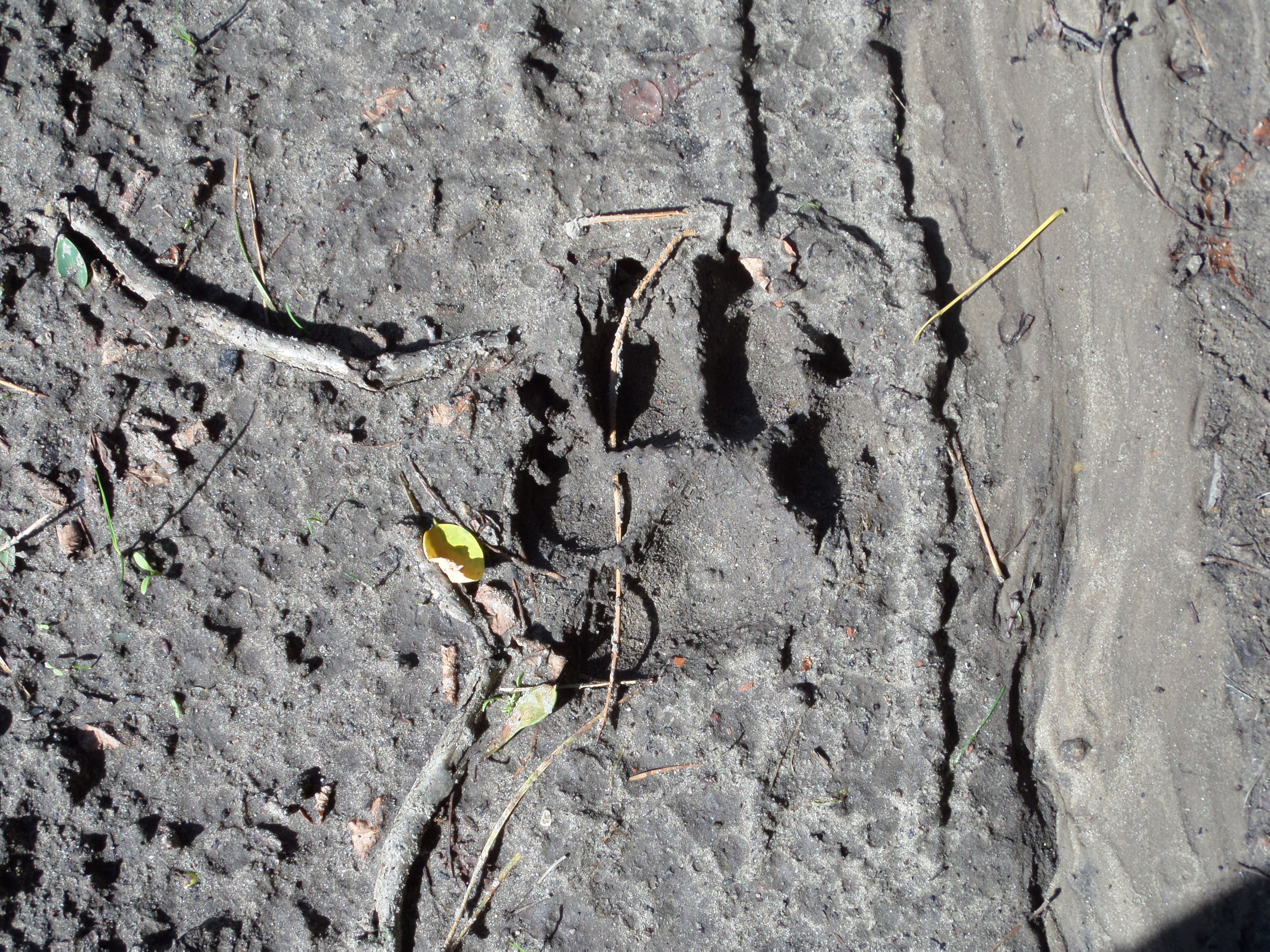 Bospad onder Ossendrecht, 31 juli 2015: verse en warme afdruk van een dierenpoot. Maar van welk dier? (foto: René Hoeflaak)