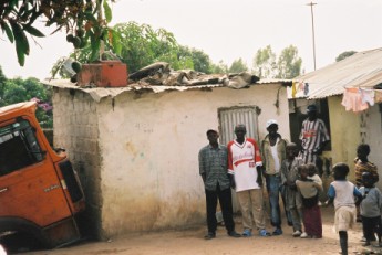 Lamin woont met zijn familie in een compound (familiegemeenschap) achter een afgebrokkelde muur aan de overkant van de telefoonwinkel. Terwijl we plaats nemen in de stoeltjes midden op het erf, schiet Liman zenuwachtig weg achter een gordijn in de deuropening van een ander huisje om binnen een paar tellen weer terug te keren.