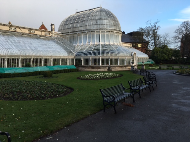 The Botanic Gardens werden geopend in 1895. Aan de rand van het rustieke park staat The Palm House, een overdekte smeedijzeren kas met tropische en kleurrijke bloemen is niet alleen van buiten maar ook van binnen een lust voor het oog en een genot voor iedereen die zich even wil verlossen van de snijdende Noord-Ierse waterkou. Zoals ik. De kas was er eerder dan de omringende tuinen en werd al in 1839 geopend.