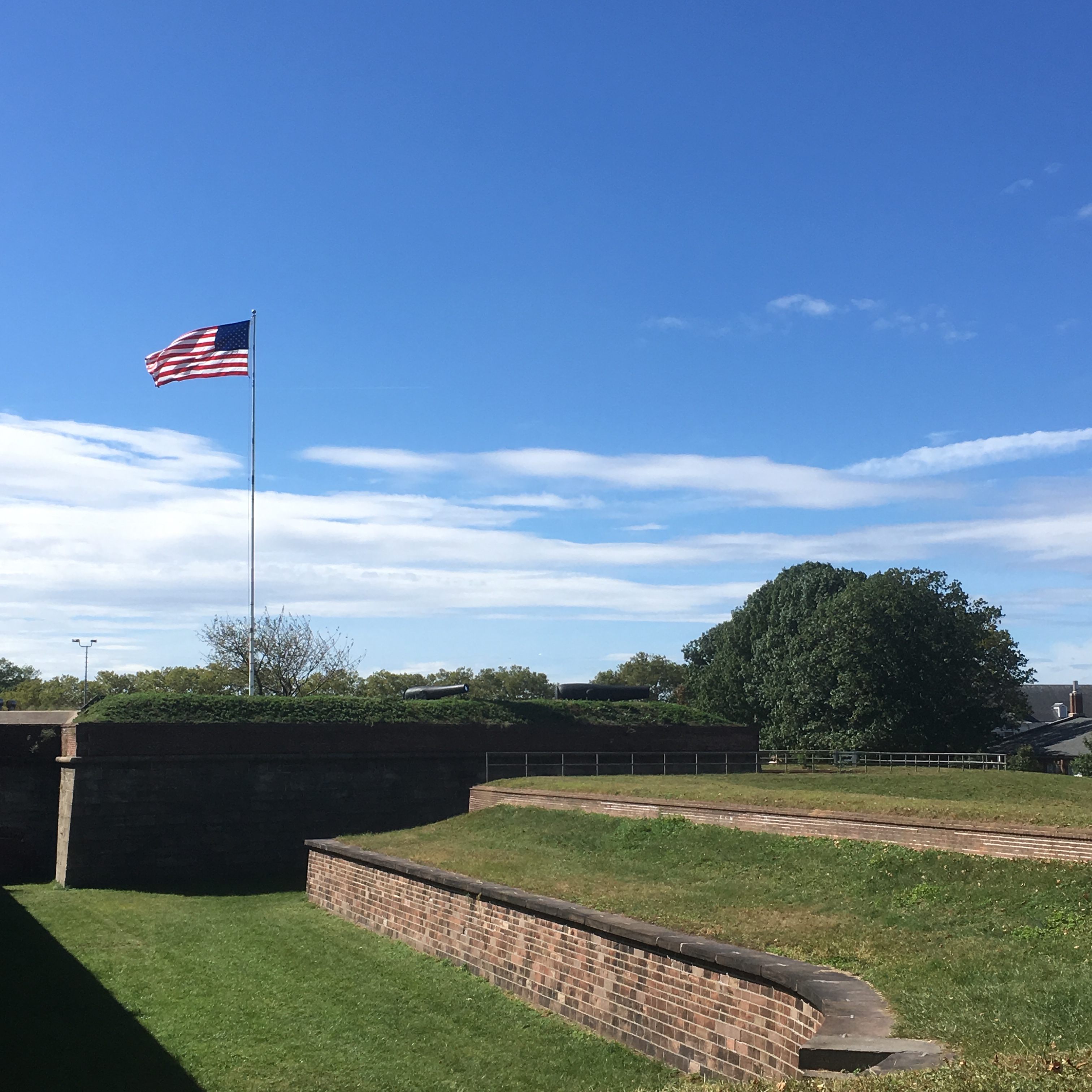 Er varen ferry’s vanuit zowel Brooklyn als Manhattan naar en van Governors Island. Beide aanmeersteigers leiden je al direct naar het door kanonnen omringde Fort Jay, een van de oudste forten van het eiland en vernoemd naar John Jay. Hij wordt gezien als een van de grondleggers van de Verenigde Staten. Het fort is ons startpunt voor een fraaie, zonovergoten en vooral ontspannen vrijdagmiddagwandeling over het rustige eiland annex openluchtmuseum. Ver weg maar ook heel dichtbij de hectiek van New York, zoals gezegd op tien minuten varen.