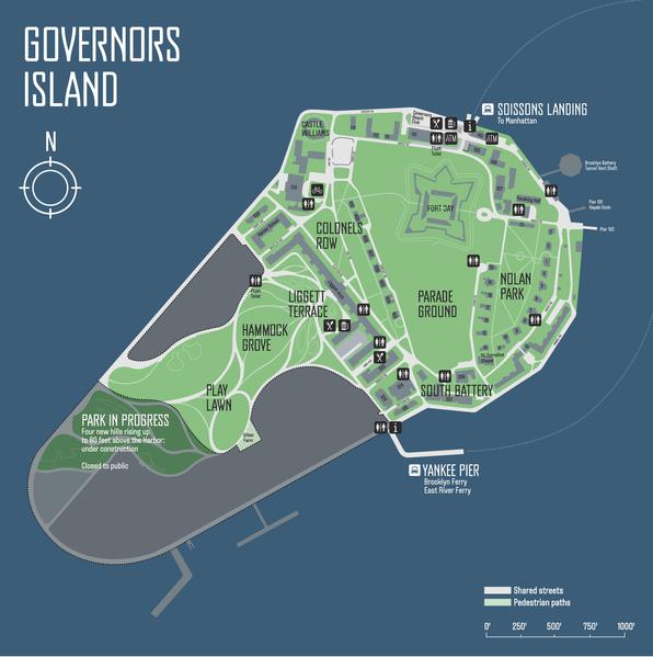 Klik hier voor het afvaartschema van de ferry’s van en naar Governors Island