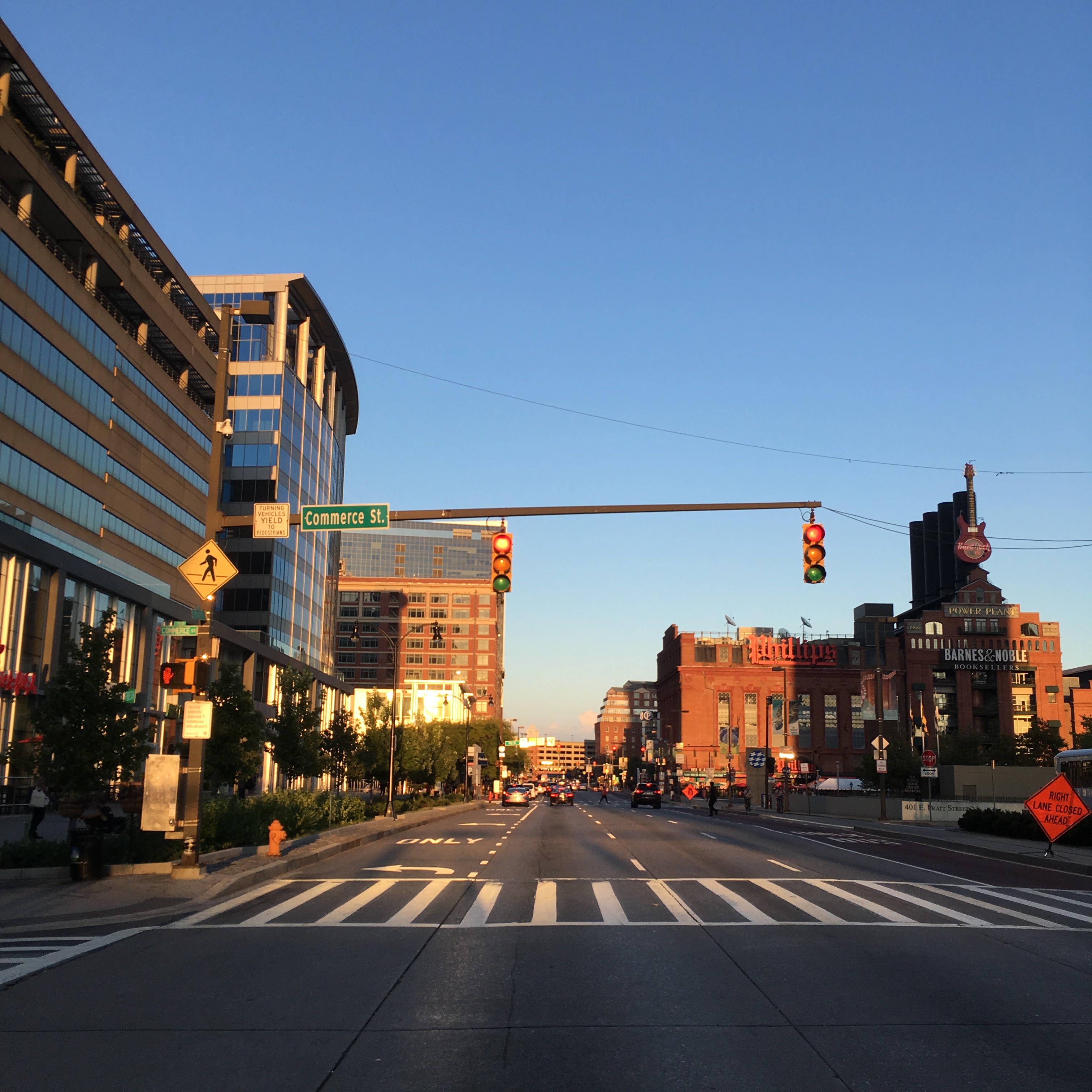 Straatbeeld in het centrum van Baltimore, Met ruim 600 duizend inwoners de 29e stad van de Verenigde Staten. (foto: René Hoeflaak)