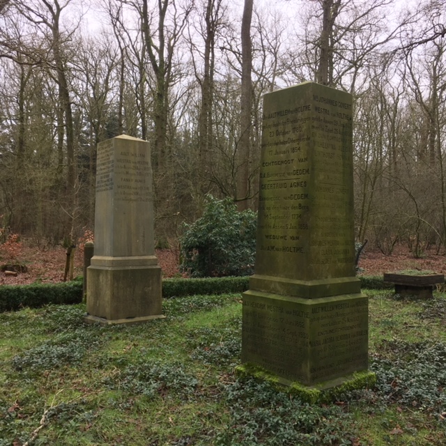 Zo ‘trof’ ik achter een hek in bosgebied Westeinde, zo’n kleine 5 kilometer van het centrum van Dwingeloo, een familiegraf van de familie Westra van Holthe met onder meer het graf van Pieter Adam van Holthe..