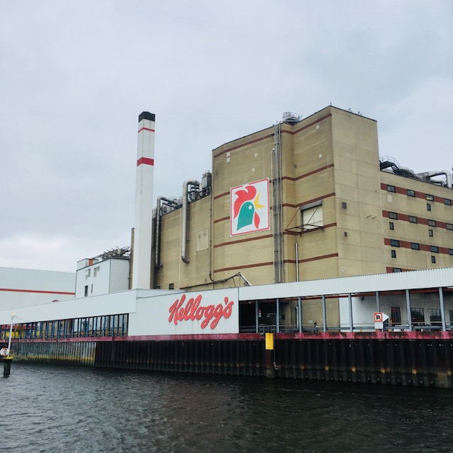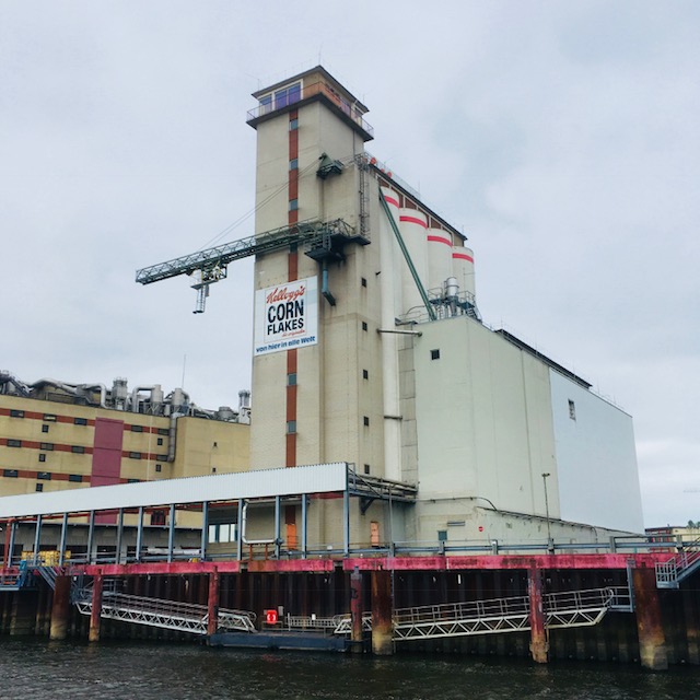 Een van de meest iconische en opvallende fabrieken aan de Weser uit het ‘decor’ van de vorige eeuw is de fabriek van het Amerikaanse bedrijf Kellogg’s, de producent van de ‘wereldberoemde’ cornflakes ontbijtvlokken. Ik moet eigenlijk zeggen ‘voormalige’ fabriek. Want zo’n beetje gelijktijdig met mijn bezoek sloot de fabriek definitief haar poorten.