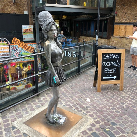 De kunstenaar koos voor een pose waarin zowel Amy’s krachtige als kwetsbare houding naar voren komt. Daar ga ik in mee. Alhoewel daar de meningen destijds over waren verdeeld. Een aantal leden van het het stadsbestuur van Camden Town was niet tevreden met het eindresultaat. Net als over de locatie. Te commercieel, zo lees ik in diverse mediaberichten uit die periode. Daarnaast moest het stadsbestuur van Camden een besluit nemen om af te wijken van de regel dat alleen standbeelden worden geplaatst van personen die minstens 20 jaar zijn overleden.