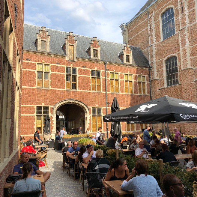 Tussen de filialen van die ketens, zo’n beetje halverwege, liep ik twee maanden geleden naar binnen door de gevelpoort van huisnummer 52. Zowel de ingang van restaurant De Margriet als de Beiaardschool. Achter de poort ligt het Bruul pleintje. Een pleintje met een tuin en een terras. Een fijne plek voor een warme, zwoele en culinaire zomeravond. Ik spreek uit ervaring. Het Bruul pleintje is ook de achtertuin van de Beiaardschool. Een unieke school. In België maar ook in de wereld.