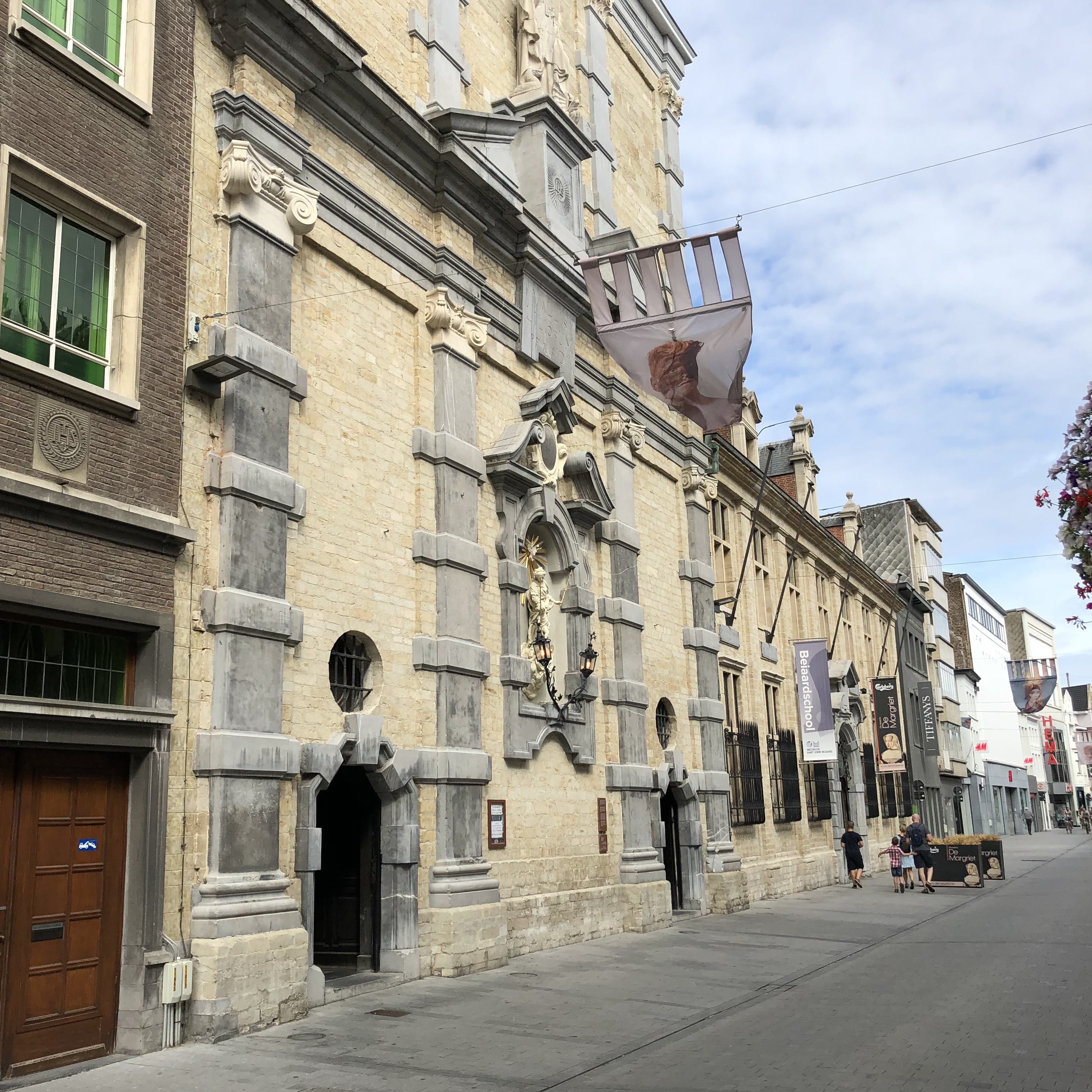 Ik neem je mee naar De Bruul, een van de bekendste, zo niet DE bekendste straat in het hart van het stadscentrum van de Vlaamse stad Mechelen. Een typische –autovrije- winkelstraat zoals we die ook kennen in Nederland. Een A locatie zoals ze het in de winkelbranche noemen. Met voorspelbare winkelketens met namen die je zelf ook wel kan raden.