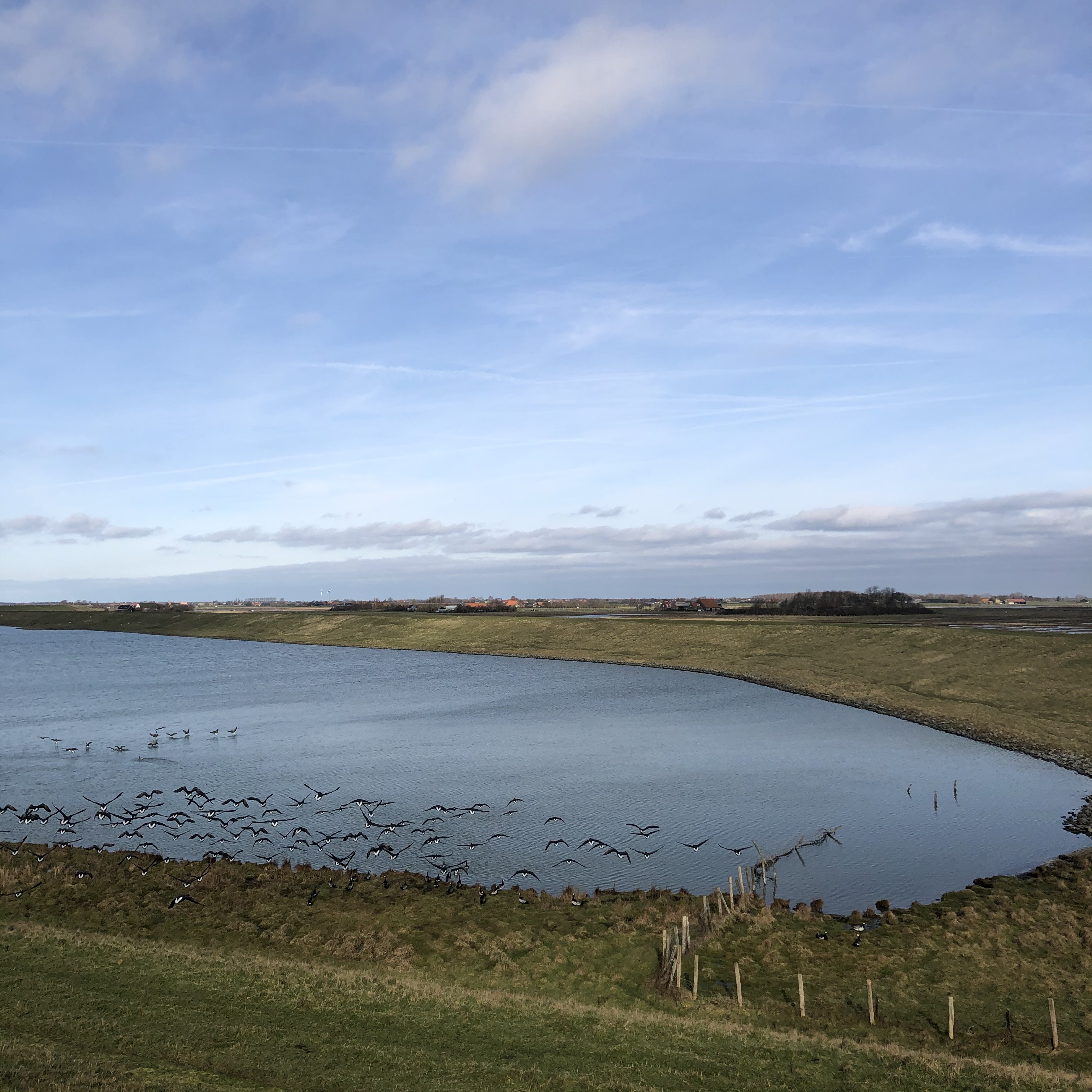 Tijdens voor- en najaarstrek is het een drukke boel daar in die inlaag. Want dan krijgen de hiervoor genoemde vogels tijdelijk gezelschap van wulpen, bonte strandlopers, drieteenstrandlopers, rosse grutto’s, zilverplevieren, kemphanen, aldus de altijd nuttige website Delta Birding. De gans ontbreekt vreemd genoeg in de opsomming van Delta Birding.