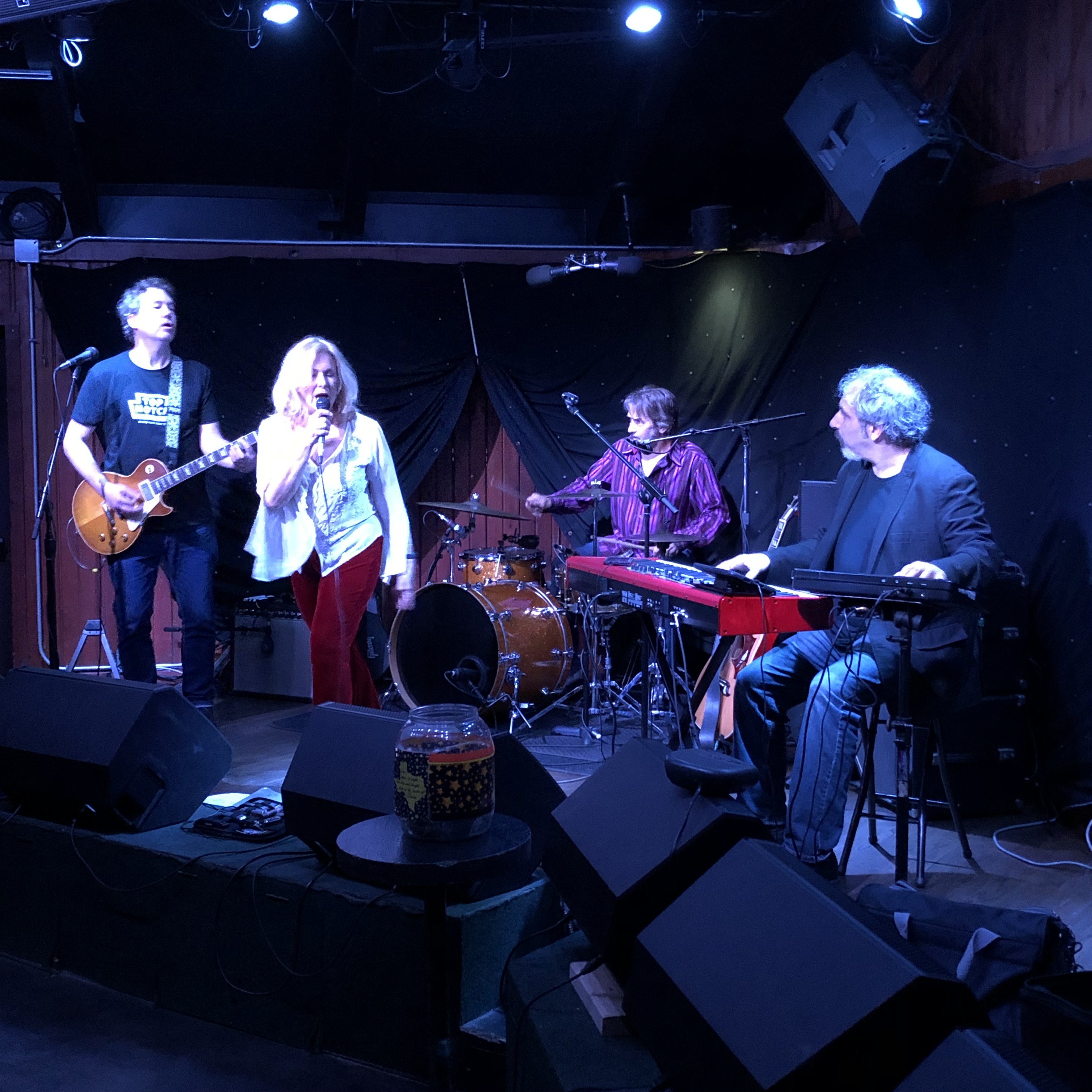 Leeann Athterton op het podium in The Saxon Pub in Austin, TX, USA, 22 april 2019. Met onder meer gitarist Mac McNabb (foto: René Hoeflaak),