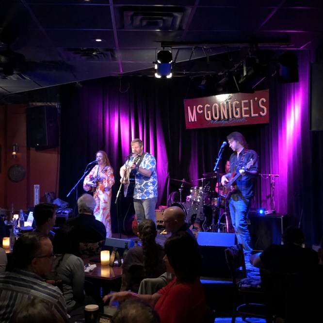 Houston,. Texas, USA, 20 april 201: Guy en Jeska Forsyth (met) band op het podium van McGonigel’s Mucky Duck (foto: René Hoeflaak)