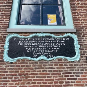 Terug naar de Dorpsstraat in Schellinkhout en ooit. Want ooit past bij Schellinkhout. Het dorpje verkreeg in 1402 al stadsrechten en in 1542 was de zee bij Schellinkhout het episch centrum van een ware zeeslag met de Hoornse vloot. In juli 1765 begon aan de Dorpsstraat de bouw van een nieuw raadhuis ter vervanging van het ‘oude’ raadhuis. Op 23 juli om precies te zijn, volgens de tekst aan de gevel Het gebouw deed tevens dienst als waaggebouw en zoals in zoveel oude raadhuizen was er onder in het gebouw een cachot.