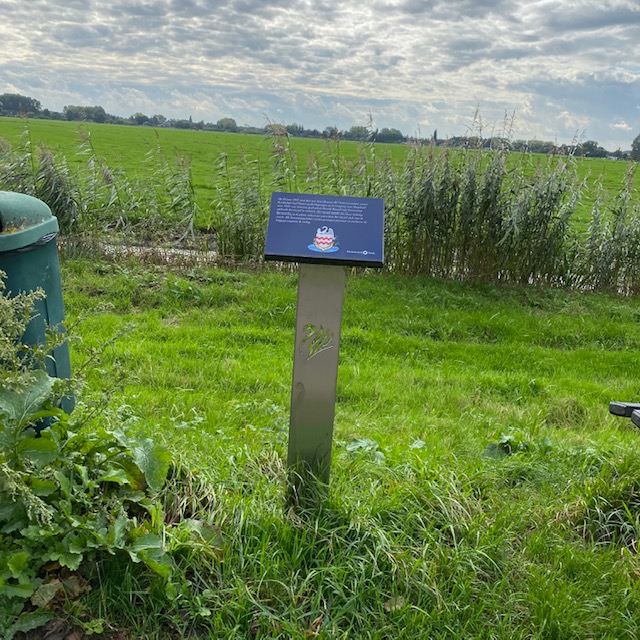 Want op 22 juni 1943– zo las ik op het bordje van het Rivierenland Fonds- stortte een zwaar beschadigde Amerikaanse bommenwerper neer op het weiland voor mij. ’Vlak voor Gorinchem gaf piloot Harold Russell zijn bemanning opdracht het toestel per parachute te verlaten nadat het was geraakt door Duitse jachtvliegtuigen. Het toestel maakt een draai richting Arkel en Russell verlaat het vliegtuig als laatste. Alle bemanningsleden worden door de Duitsers gevangen genomen en overleven uiteindelijk de oorlog’ aldus de tekst. Na enkele minuten turen en mijmeren over het weiland, denkend aan de Russell en zijn bommenwerper, vervolgde ik mijn wandeling.