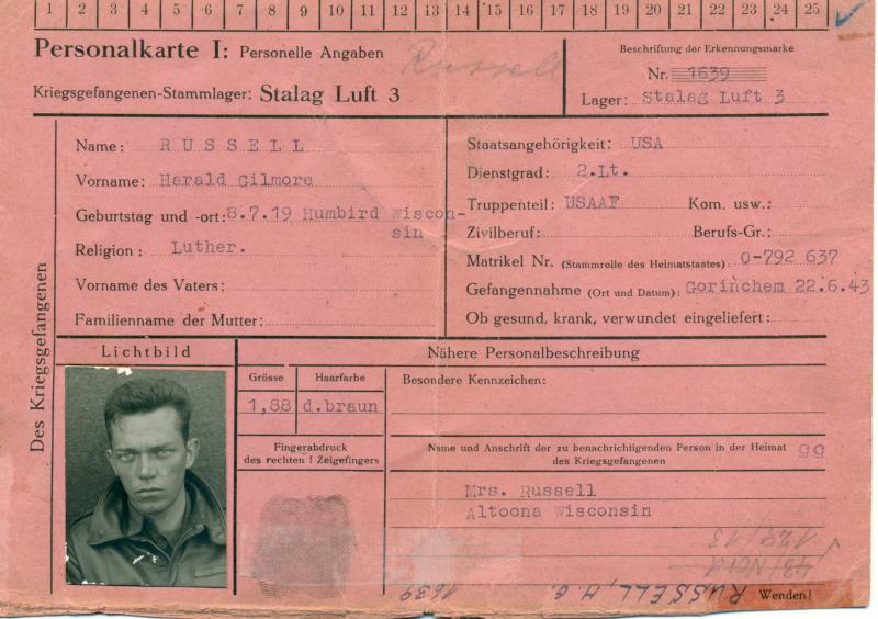 Vandaag zocht ik verder. Want die Russell liet mij niet los deze week. Ik vond op de site van The American Air Museum zijn Duitse persoonskaart- als krijgsgevangene- en zag een foto van kinderen die jurkjes droegen gemaakt van de parachute van Russell.