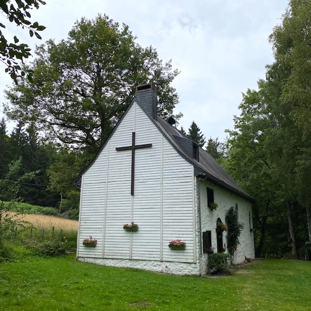Na een klein uurtje – heuvel af vooral heuvel op- wandelen van het centrum van het Malmedy, een middelgroot toeristenplaatsje in de Waalse provincie Luik, en happend naar adem komt de tussenstop bij de kluizenaarswoning Ermitage de Bévercé, net zo geroepen als een oase in de woestijn. Een oase van rust wel te verstaan.