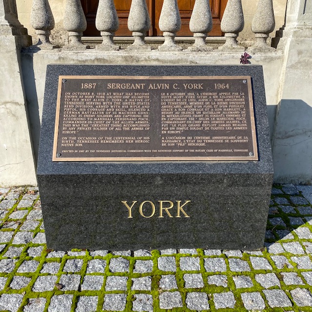 En zoals ook bijna ieder Frans dorp staat het huis van de Mairie, de burgemeester, op een opvallende en centrale plek. Zo ook in Chatel-Chéhéry. Voor het huis van de Mairie staat een monument ter ere van de Amerikaanse Sergeant Alvin York. Een naam waarvan ik in ieder geval nooit eerder van of over had gehoord.