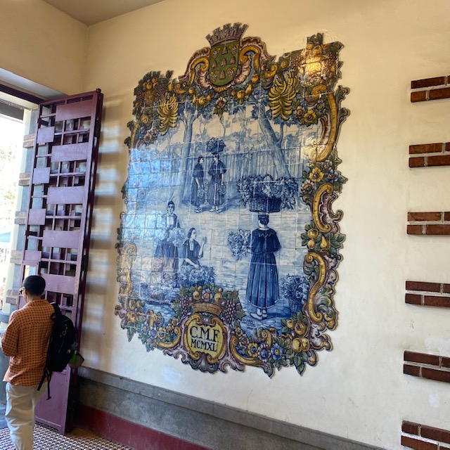 De wand van de hoofdingang aan de Rua Brigedeiro Oudinot is opgesierd met zogenaamde azulejo, tegeltableaus met afbeeldingen van regionale taferelen. Veel verkopers zijn gekleed in plaatselijke traditionele kleding.