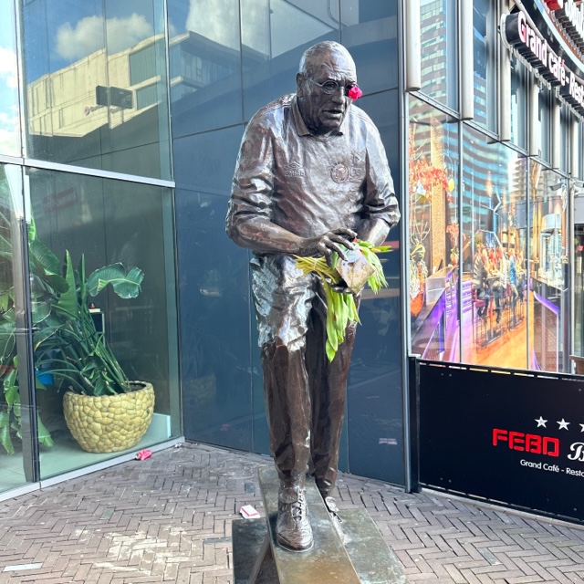Van Dorpel speelde op 21 mei 1989 zijn laatste wedstrijd voor Volendam. Uit tegen FC Twente. Bobby Haarms overleed in 2009, op 6 juni om precies te zijn, op de dag af 20 jaar nadat Steven van Dorpel voor de laatste keer op het vliegtuig stapt naar Suriname. Toeval bestaat niet. Het standbeeld van Bobby Haarms werd onthuld in 2011 naast de Johan Cruijff Arena. Eigenlijk zouden beide standbeelden naast elkaar moeten staan. Steven en Bobby. Lees verder na de foto.