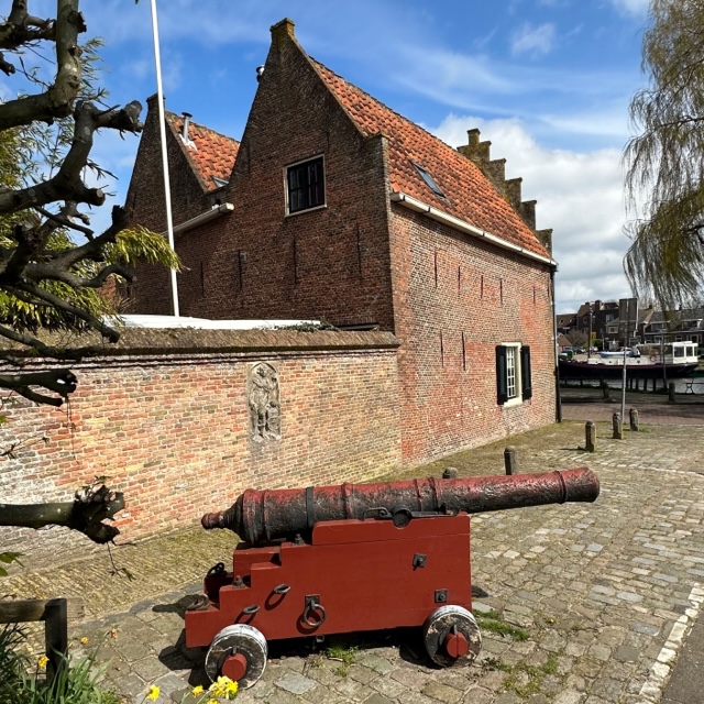 Overigens staat ook voor de stadsgevangenis een rood kanon. Of die ook is buitgemaakt en op wie, is mij niet bekend. De stadsgevangenis met cellen en martelwerktuigen is van begin zomervakantie tot en met de Open Monumentendag in september geopend. Ik was dus te vroeg. Maar ook van buiten is genoeg te zien, daar rondom het stadhuis in Enkhuizen.