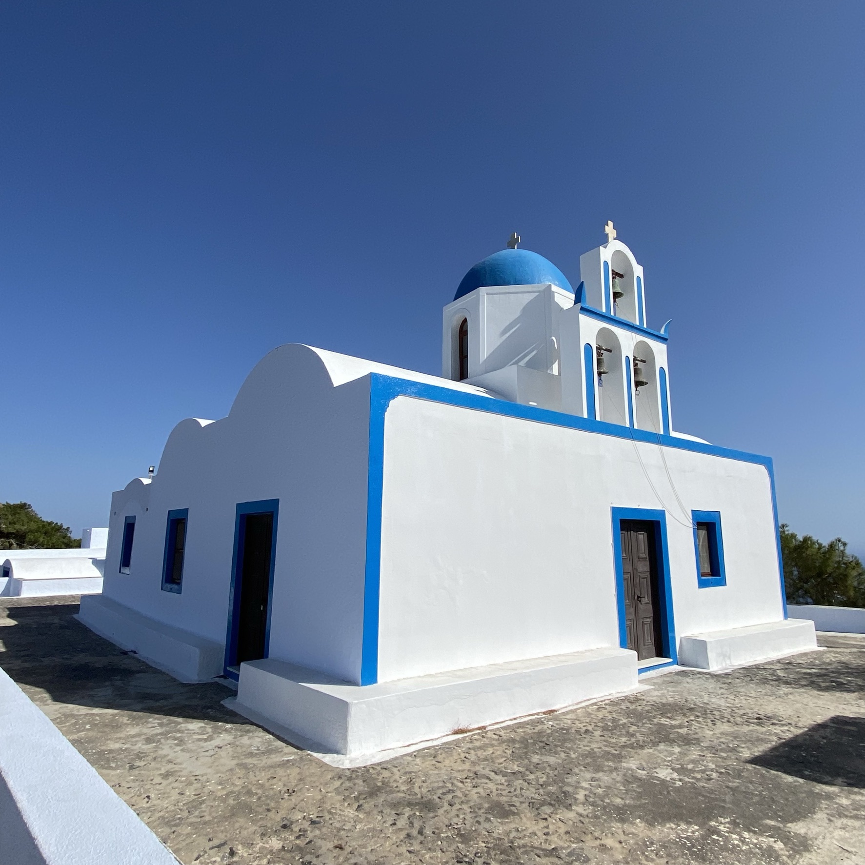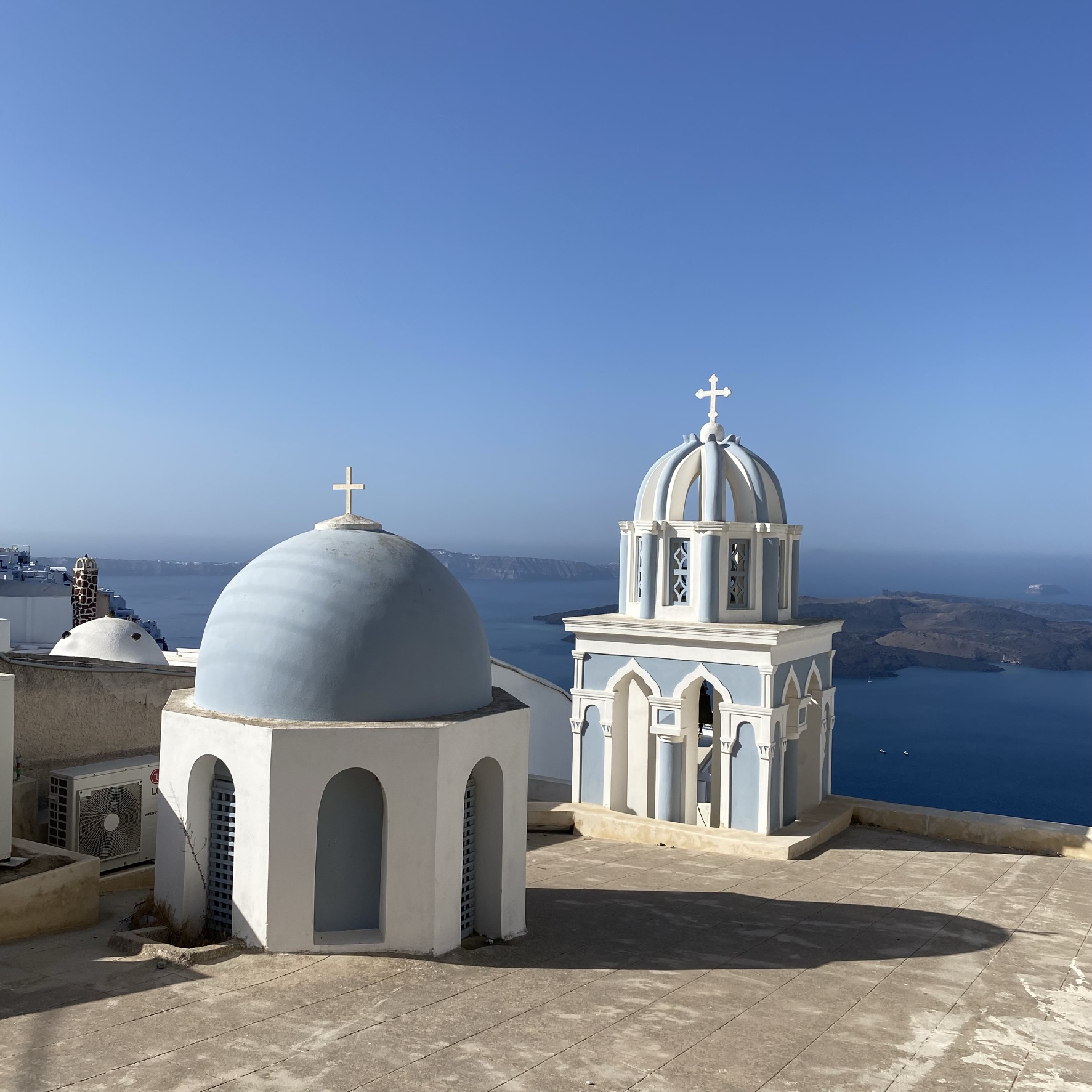 Ik begon mijn wandeling met een cappuccino op het terras van het Nektar Lounge café in Fira. Met uitzicht op de kustlijn en in de verte Oia. Zelden was de voorpret voor een wandeling zo groot en voelde ongeduld zo aangenaam als op dat terras. Let’s go.