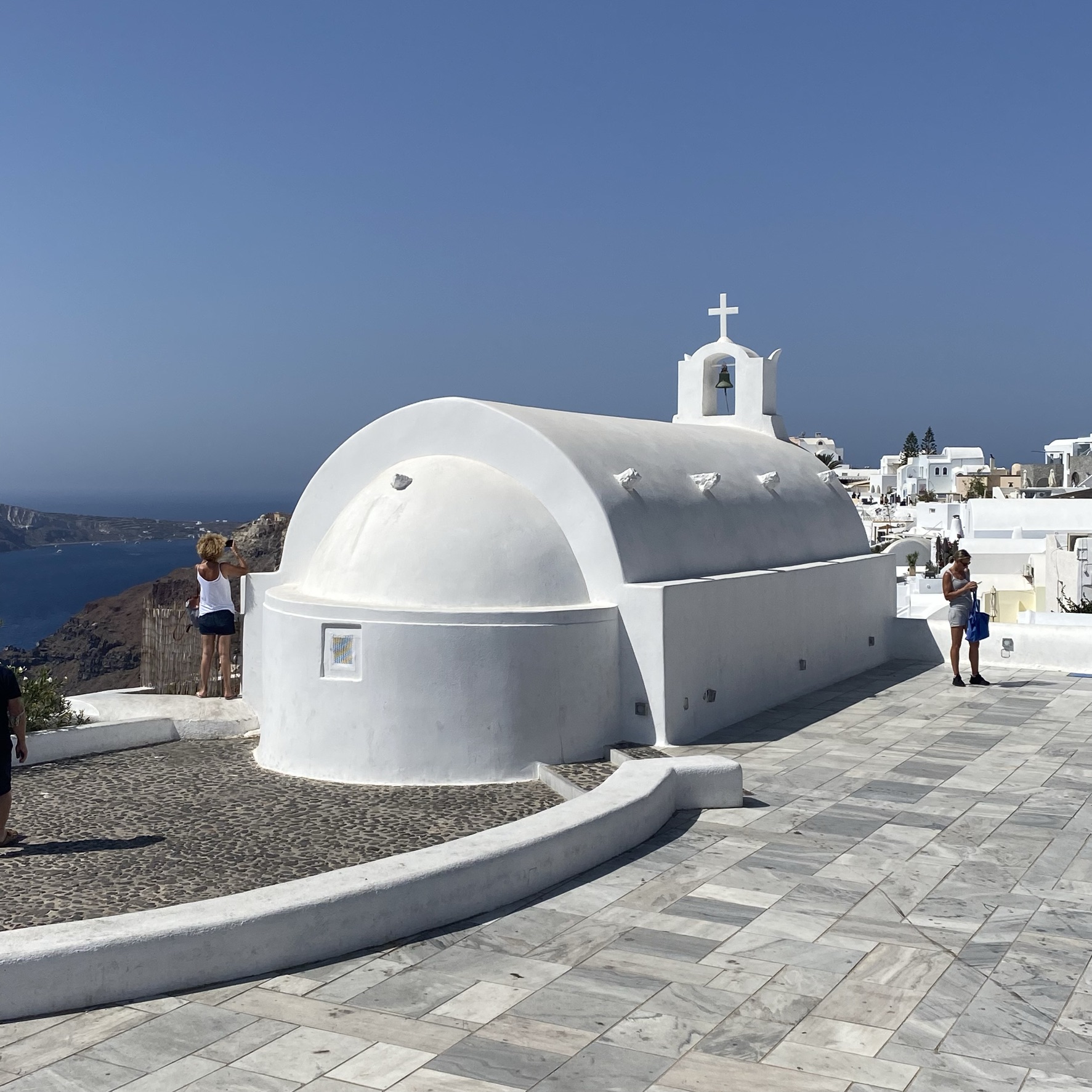 Oia was eind negentiende en begin twintigste eeuw een belangrijke en rijke handels- en havenstad op de vaarroute tussen Alexandrië en Rusland. Met de opkomst van de Griekse havenstad Piraeus verloor Oia haar vooraanstaande positie als havenstad. Helemaal na de zware aardbeving in 1956 verlieten veel inwoners Oia. In de jaren zeventig kwam een groot restauratieprogramma op gang en heeft Oia zich ontwikkeld tot een belangrijke toeristische plek met typerende witte huisjes met platte daken en kerken met blauwe koepels. Ik zeg: als het kan, doe die wandeling
