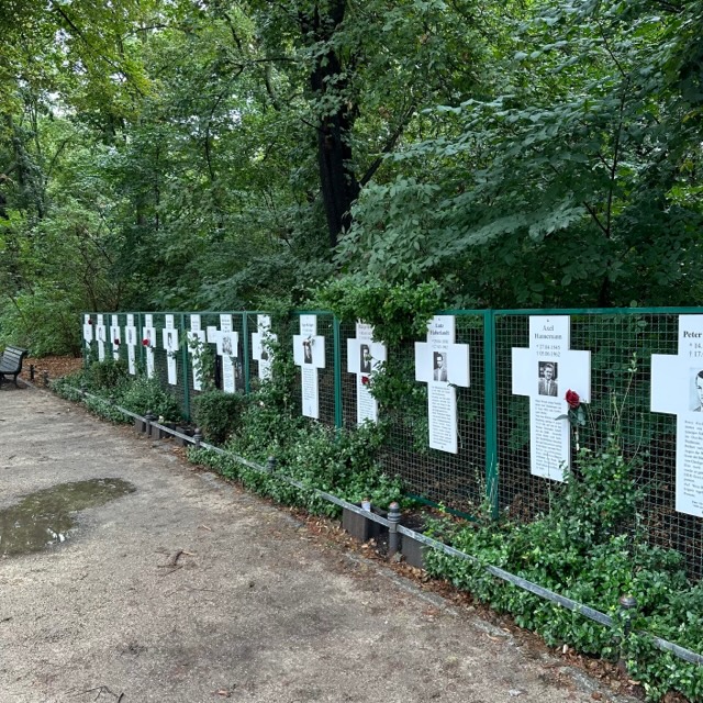 Op 21 juni 2003, de 35ste geboortedag van Chris Gueffroy, werd op de plek van de fatale vluchtpoging een herdenkingsmonument onthuld. En op 13 augustus 2010 werd de Britzer Allee tussen Treptow en Neukölln omgedoopt tot Chris-Gueffroy-Allee. En zijn naam staat op een van de 16 kruizen. Met 16 aangrijpende verhalen. En aanleiding voor deze blog,