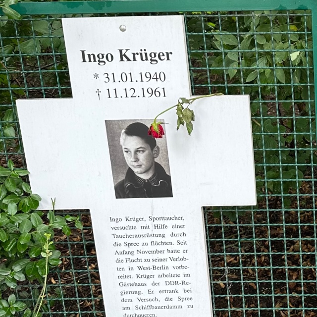Ingo Krüger was nog geen 22 jaar oud toen hij, al zwemmend in de Spree van Oost- naar West-Berlijn, op de late avond van 10 december 1961 levenloos door Oost-Duitse grenswachten uit de rivier de Spree werd opgepikt. Kort daarvoor had hij – met een duikpak onder zijn kleding- met 2 vrienden een taxi genomen naar de oevers van de Spree bij de Schiffbauerdamm. Lees verder na de foto.