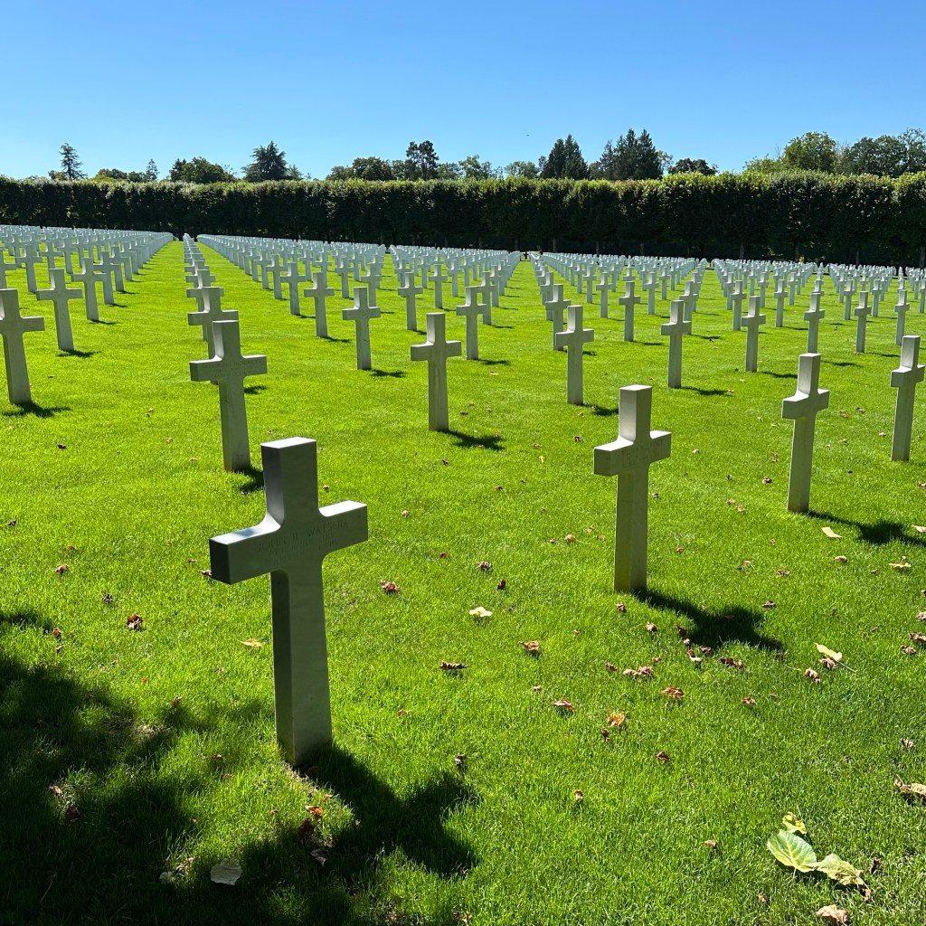 De begraafplaats is 130 hectare groot (180 voetbalvelden) en de rustplaats van 14.246 Amerikaanse soldaten, in zes weken tijd gesneuveld tijdens het genoemde Meuse-Argonne offensief. Het is de grootste Amerikaanse militaire begraafplaats van Europa, verdeeld over acht velden en omringd door lindebomen. Lees verder na de foto’s