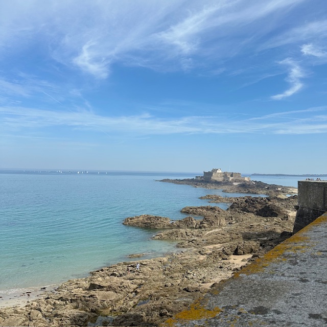 Voor de kust van Saint-Malo Intra Muros liggen ook enkele rotseilanden. Op een van die eilanden bevindt zich ook het graf van Ierse monnik Malo, naar wie Saint-Malo is vernoemd. Hij werd in de zesde eeuw tot bisschop van Aleth, de oudste nederzetting op het grondgebied van het huidige Saint-Malo, benoemd. Omdat die nederzetting voortdurend werd aangevallen door de Noormannen vluchtten veel inwoners naar de rotseilanden langs de kust, nog altijd te zien vanaf de stadsmuren. Lees verder na de foto