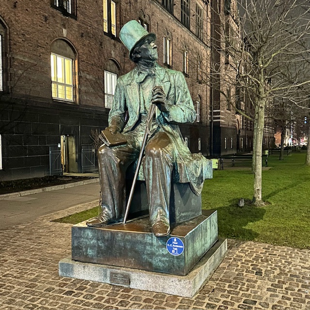 Ik las het artikel, enkele dagen na mijn bezoek aan Kopenhagen. Met de herinnering aan de pleinen en een aantal van die 96 standbeelden nog vers in mijn brein en in mijn telefoon. En inderdaad, vrijwel allemaal standbeelden van mannen. Op een na, die van de Kleine Zeemeermin, wellicht het beroemdste standbeeld van Denemarken en daarmee ook de beroemdste vrouw van Denemarken een ironisch genoeg ook een sprookjesfiguur. Uit het gelijknamig boek van de Deense dichter en schrijver Hans Christian Andersen (1805-1875). Zijn standbeeld is en was niet te missen.