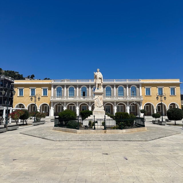 Het Dionysios Solomosplein in Zakynthos stad is het bekendste plein van het Griekse eiland Zakynthos. De naamgever van het plein zal je na een bezoek aan het plein niet meer vergeten. Maar er is meer dat het plein zo bijzonder maakt.