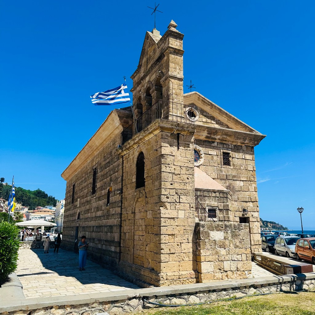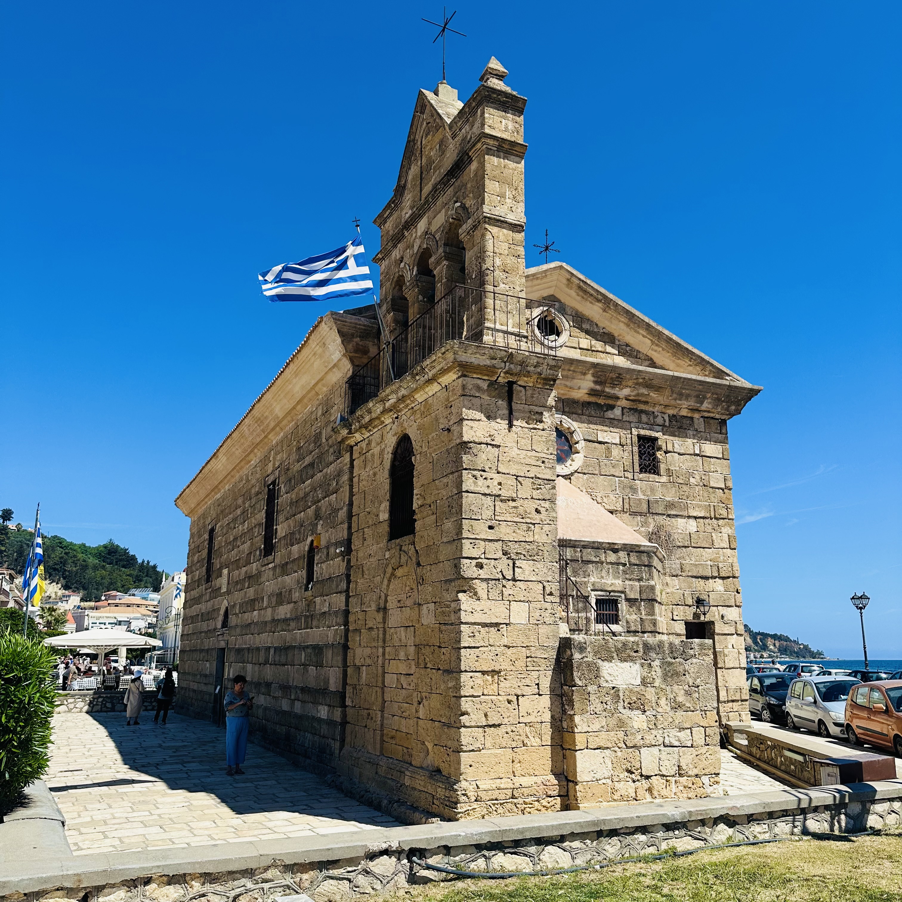 Op hetzelfde plein – aan de haven- vind je ook de kerk van Sint Nikolaos Molos, een van weinige gebouwen die de zware aardbeving van 1953 ongeschonden heeft doorstaan. Opmerkelijk, want 70 procent van de gebouwen op Zakynthos werd verwoest.