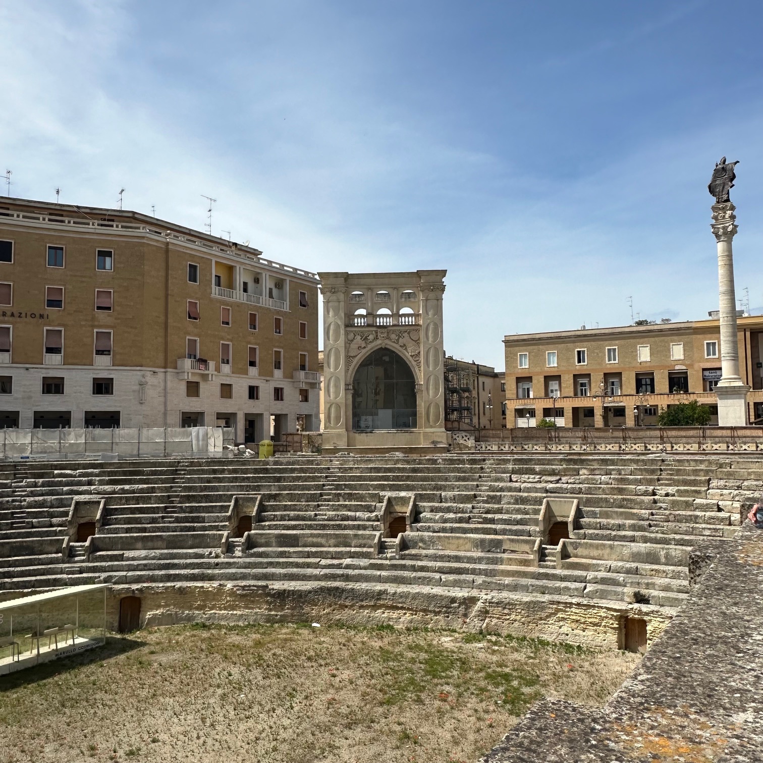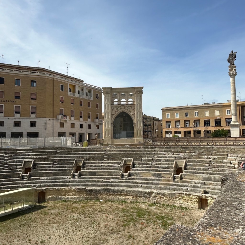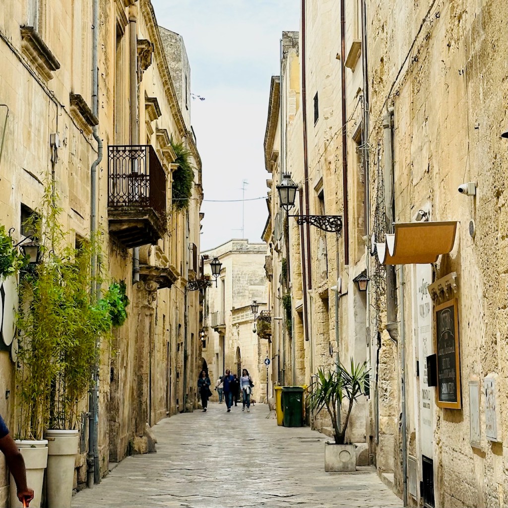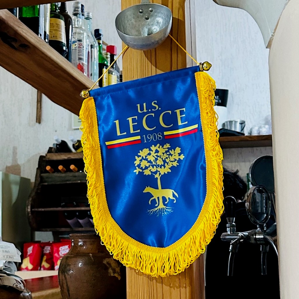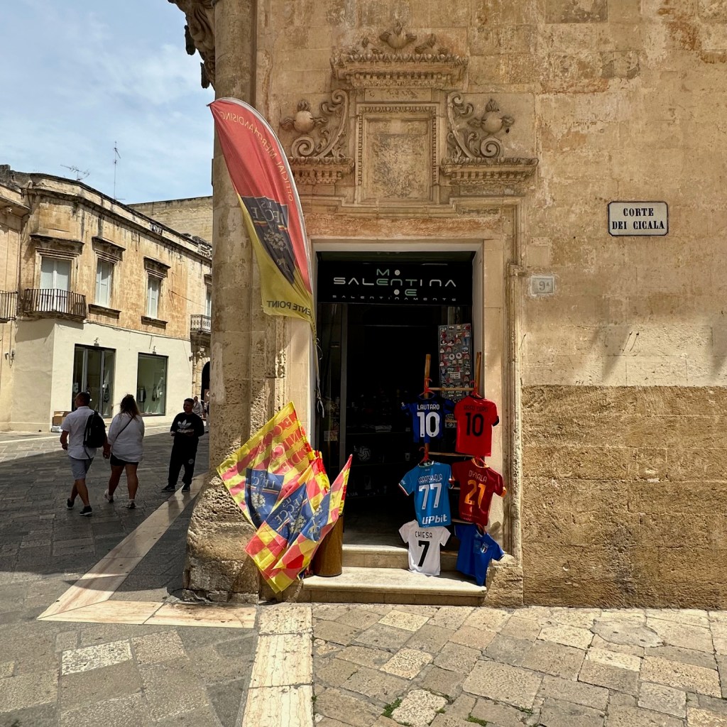 Die indrukwekkende en rijke geschiedenis is overal in de binnenstad van Lecce zicht-, en voelbaar. Met smalle en kronkelende steegjes, kerken, standbeelden, een tweeduizend jaar oude amfitheater en nauwe straatjes zoals de Via Del Palazzio Dei Conti di Lecce. Niet ver overigens van de fanshop van de voetbalclub Lecce, waar ik het niet kon laten een cap te kopen. Aan het einde van een lange week wandelen langs de Adriatische kust in Puglia. Lees door na de foto.