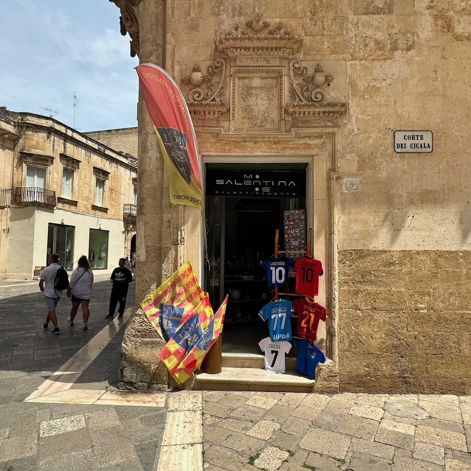 Lecce telt 90 duizend inwoners en is de geboorteplaats van de voetballers Marco Materazzi, 41-voudig voetbalinternational en vooral bekend van de kopstoot van Zinedine Zidane, in de door Italië gewonnen WK finale van 2006. Ook voormalig voetbal international en coach Antonio Conte kwam in Lecce ter wereld. Hij speelde van 1985 tot 1991 voor de voetbalclub US Lecce, die zich het afgelopen seizoen met 38 punten uit 38 wedstrijden wist te handhaven in de Italiaanse serie A. Naar mijn weten, speelde er nooit een Nederlandse speler voor Lecce, de club van oud AZ en Feyenoord spits Graziano Pelle.Lees door na de foto’s.