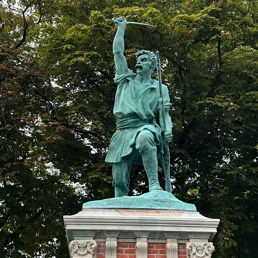 Het standbeeld is bij Tienenaars bekend onder de naam ‘De Groene’ en werd onthuld op 6 augustus 1905 ter herdenking van de 75ste verjaardag van de Belgische onafhankelijkheid en werd gemaakt door de Antwerpse beeldhouwer Jef Lambeaux (1852-1908), ook bekend van de Brabo fontein op de Antwerpse Grote Markt.